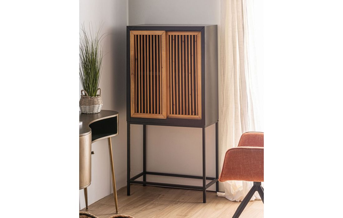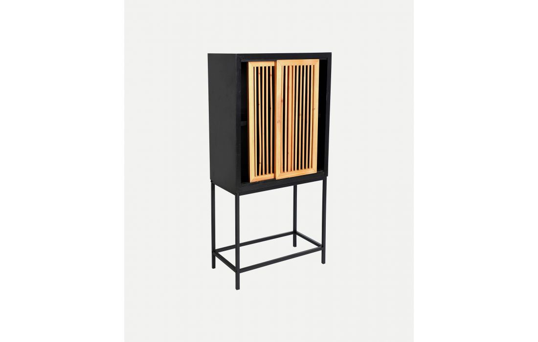 The LOMQUI HIGH FURNITURE stands out for the combination of its structure and its doors made of thin bars of natural wood.It is made of fir wood and has two very practical and manageable sliding doors.