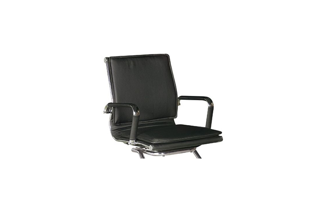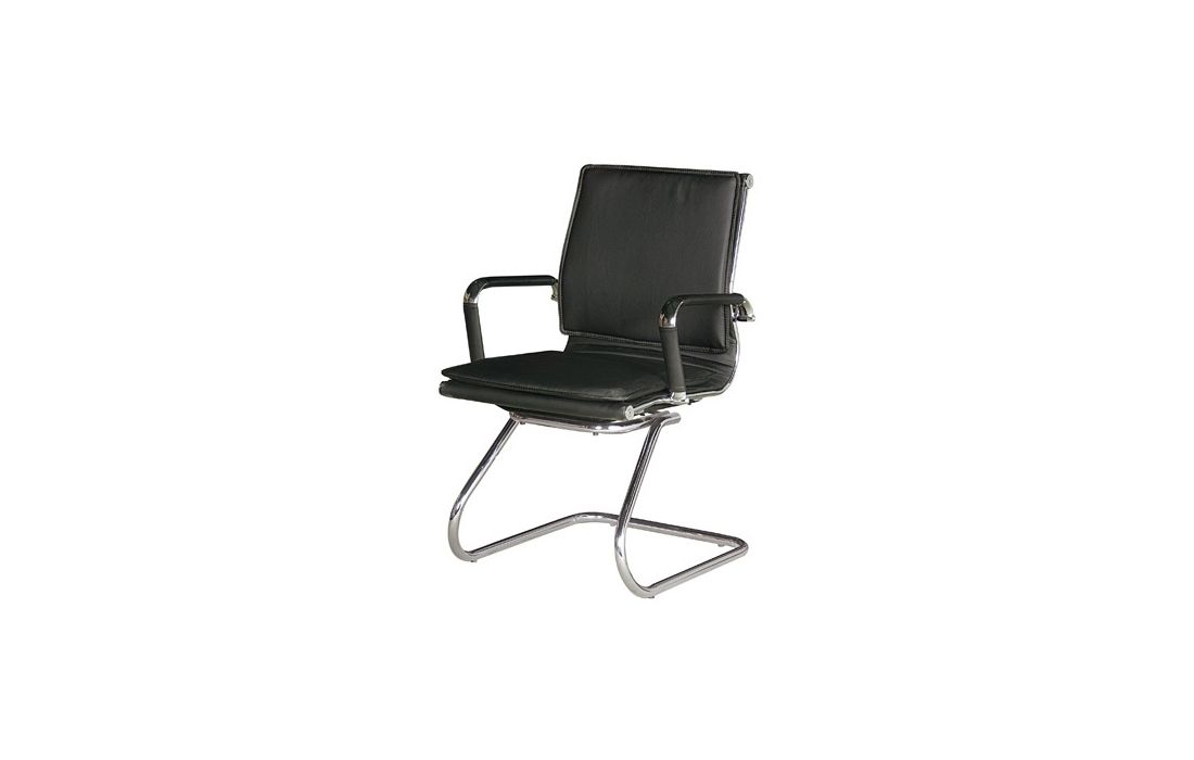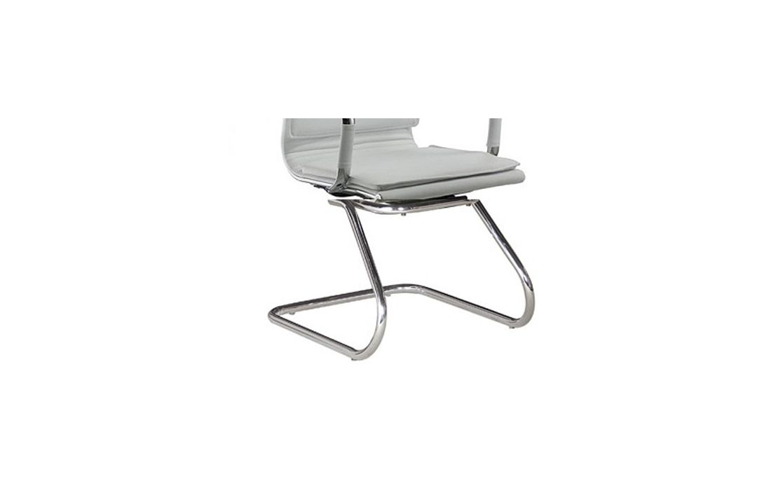 Chair with chromed metal structure and upholstered in white and black synthetic leather.