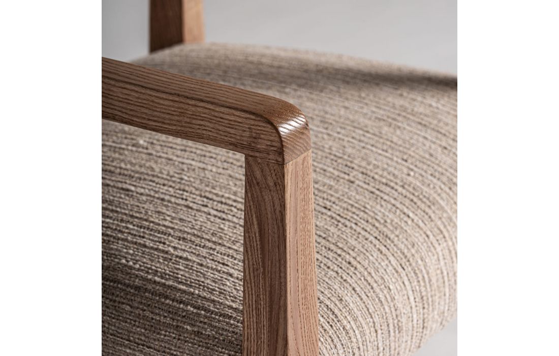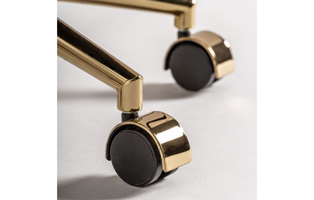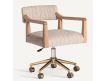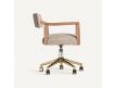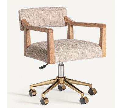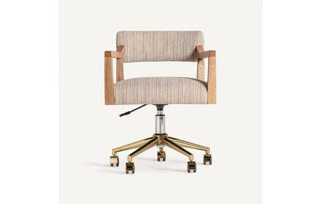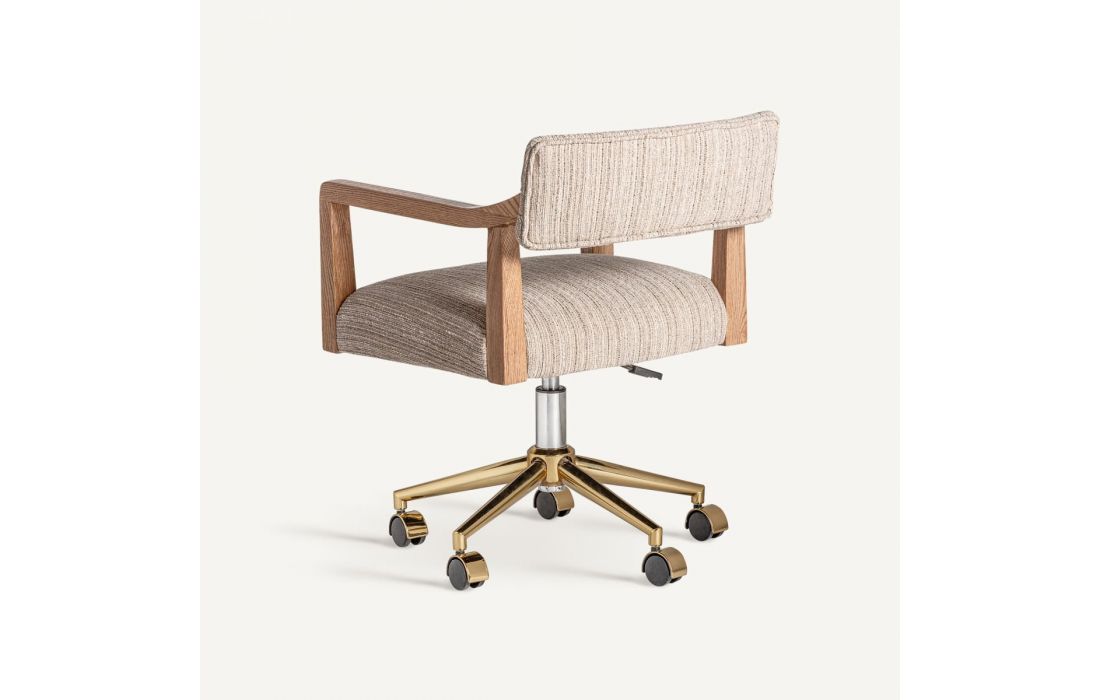 Height-adjustable office chair with castors and armrests, wooden frame with fabric upholstery and golden steel legs.Recipient :