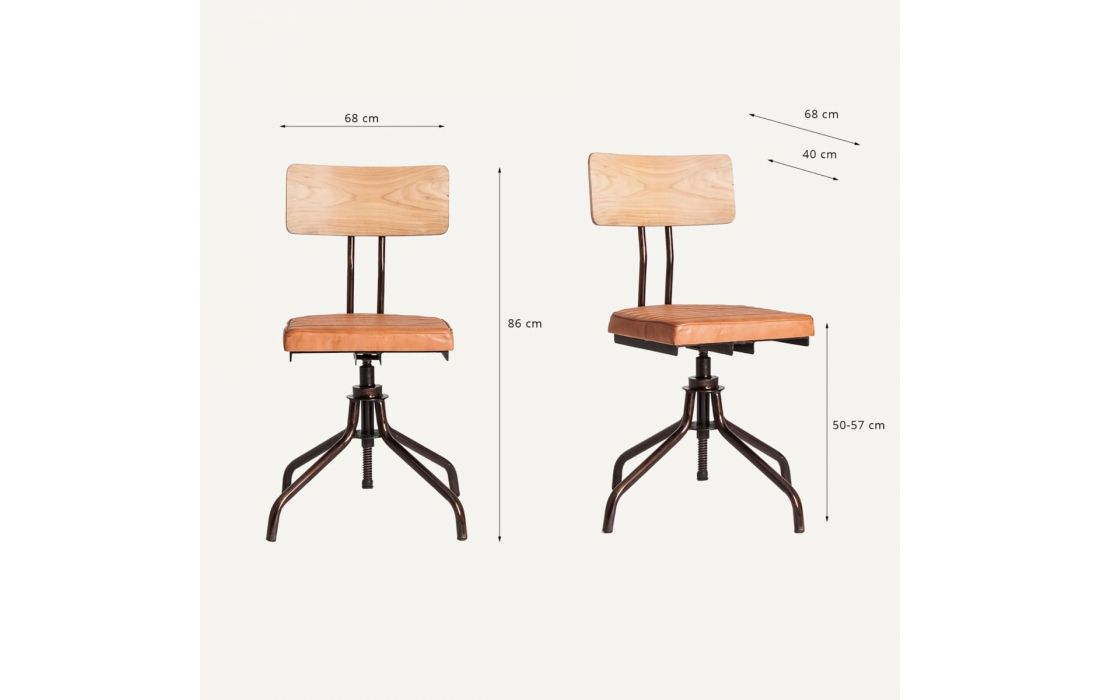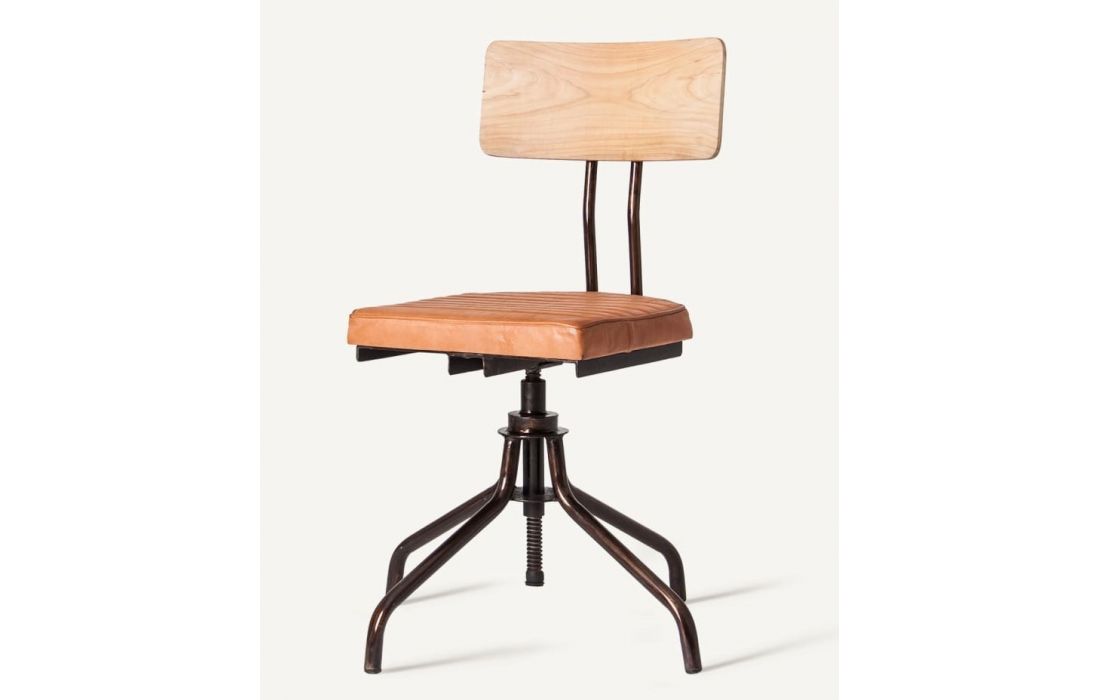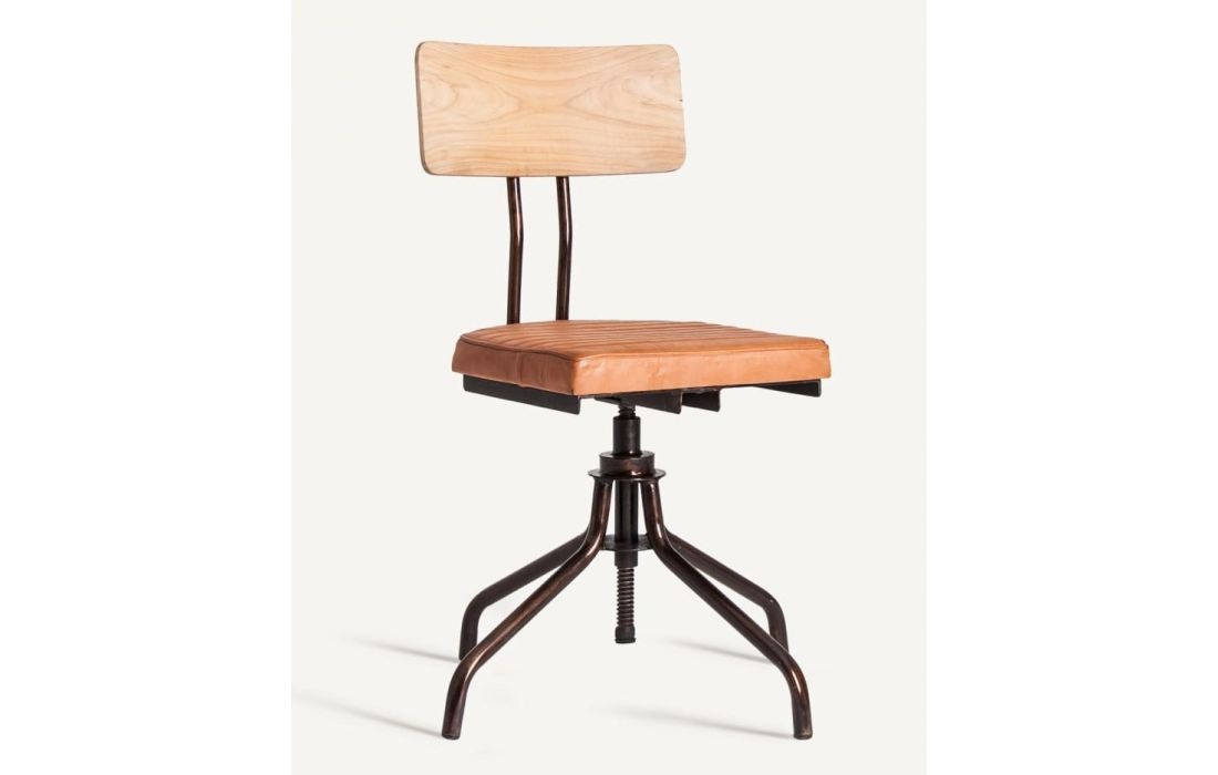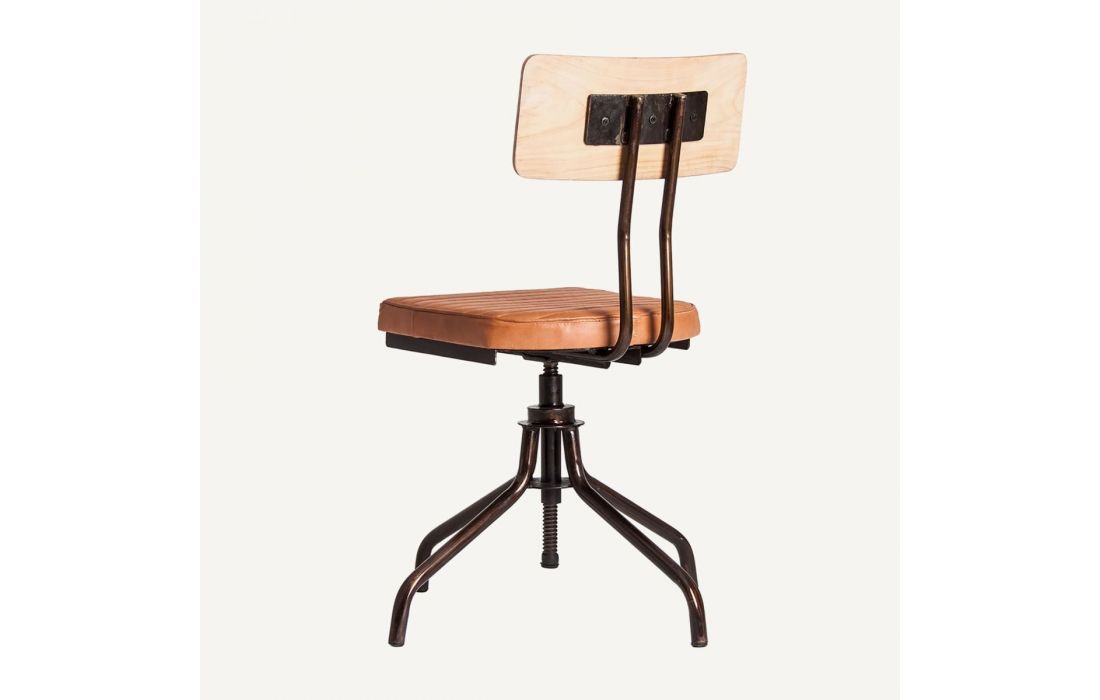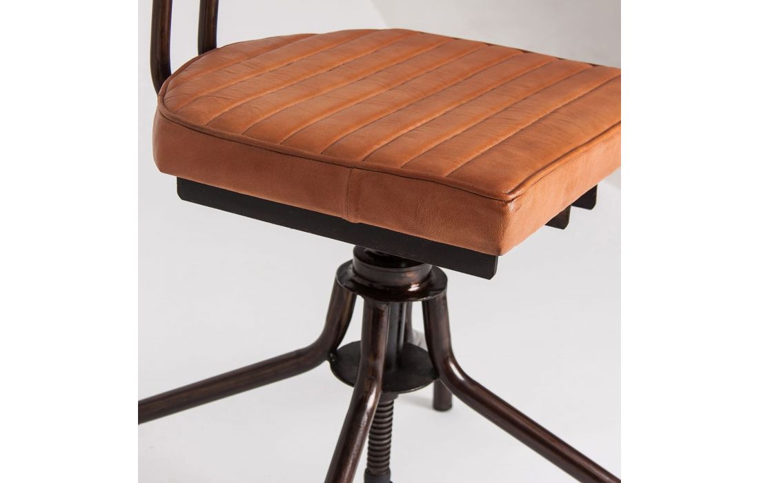 Height-adjustable office chair with iron structure and leather upholstery. Vintage style.Recipient :