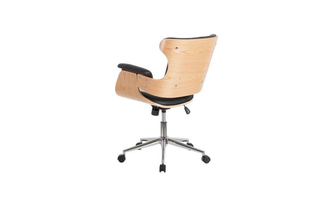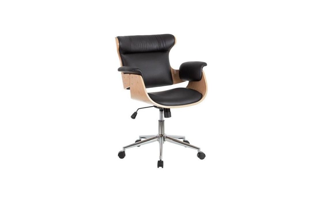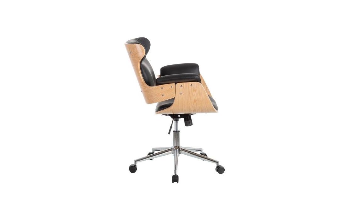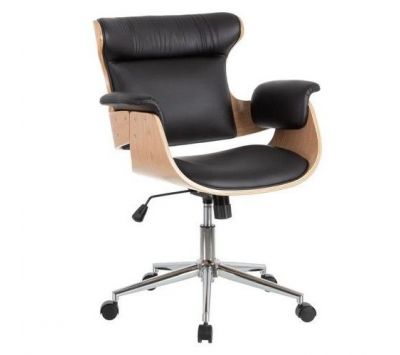 Swivel gas lift chair with tilt and lock, chromed metal base and upholstered in synthetic leather in camel, black and white.Dimensions in cmW 56 D 68 H 107/115Delivery time10 to 15 days