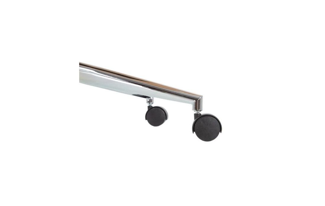 Swivel gas lift chair with tilt and lock, chromed metal base and upholstered in black synthetic leather.Dimensions in cmW 66 D 69 H 118/128Delivery time10 to 15 days