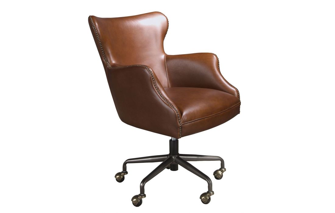 Modern design swivel armchair with seat and back upholstered in leather and legs in darkened stainless steelRecipient :