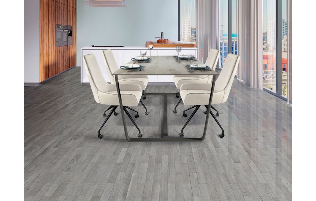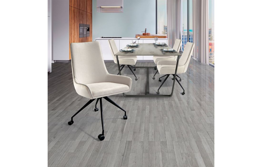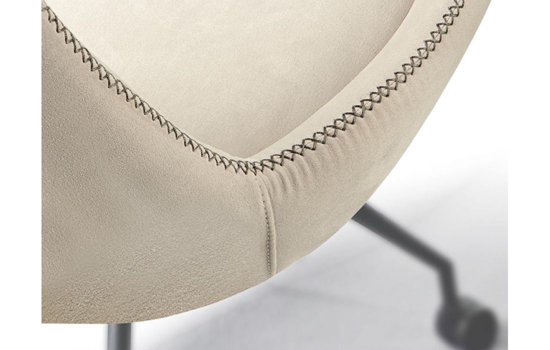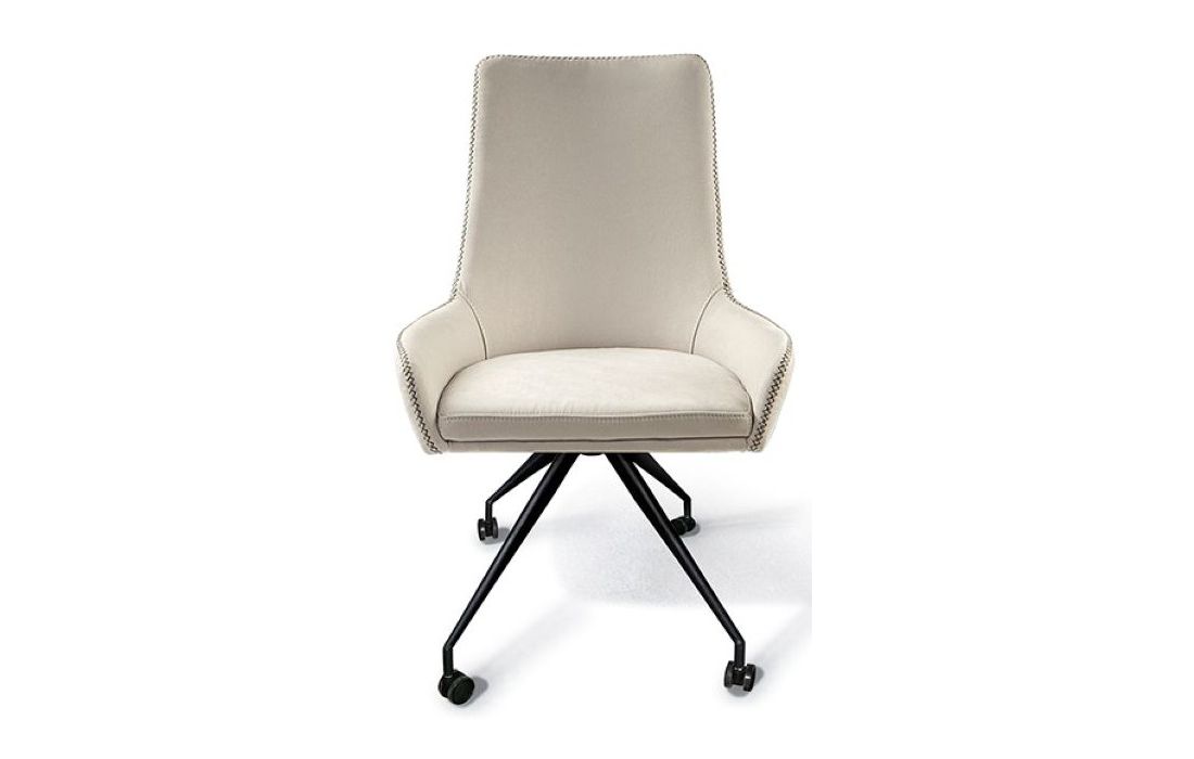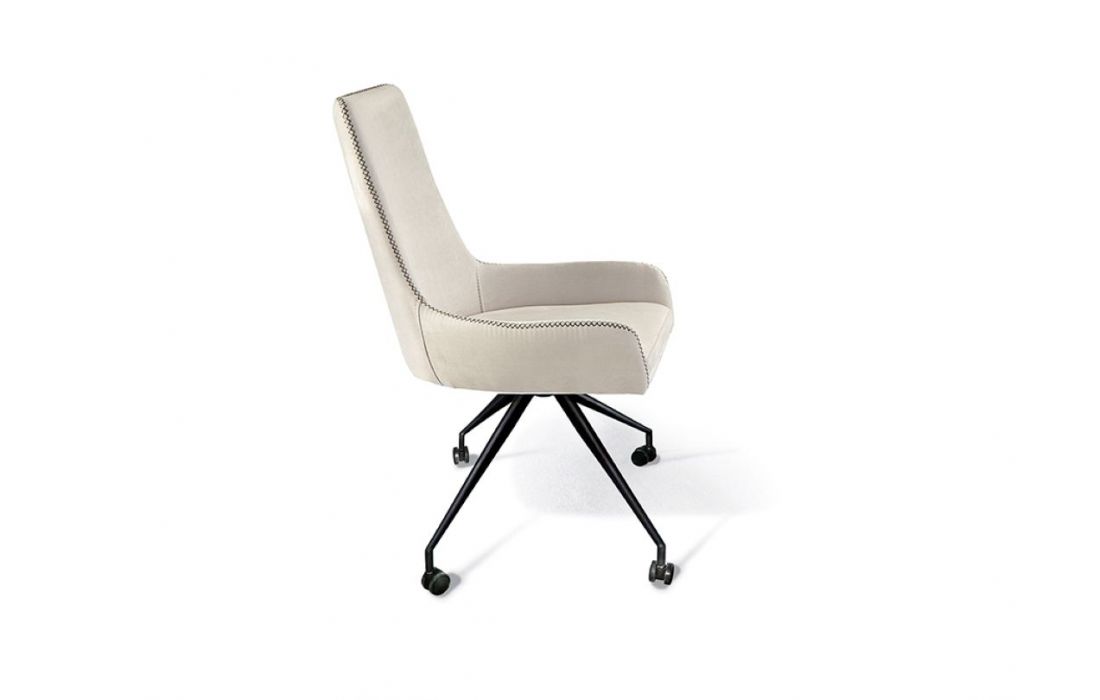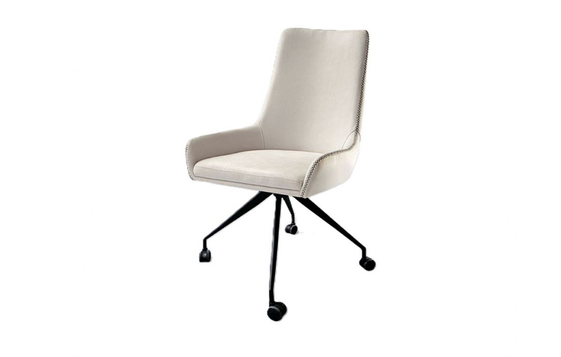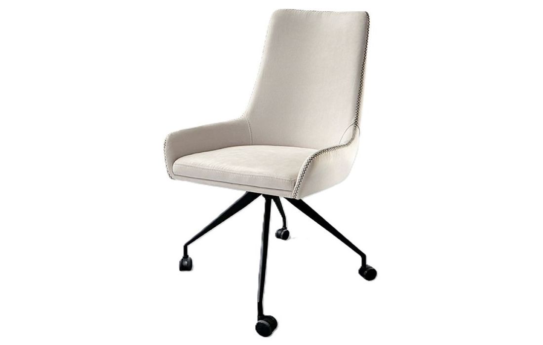 White fabric office chair with decorative gray stitching and metal legsRecipient :
