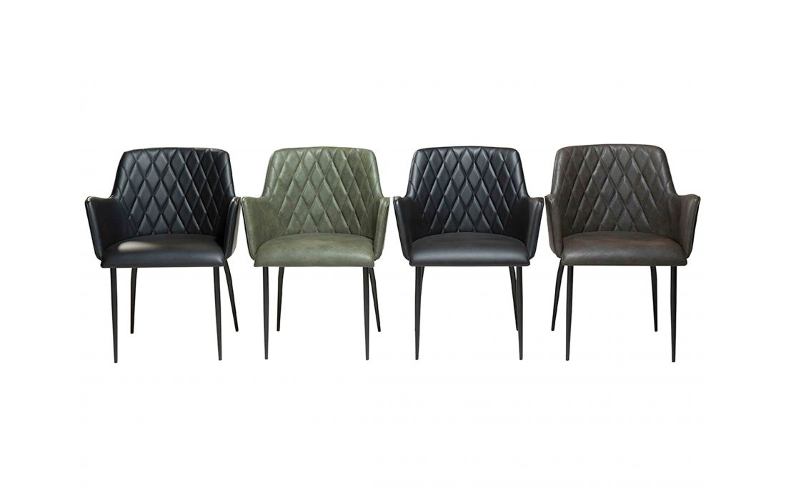 Armchair with upholstered in black synthetic leather, brown, vintage green, vintage gray and brown vintage with feet in black