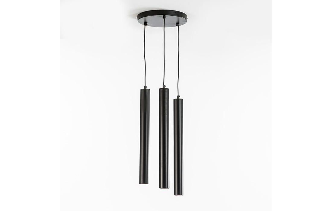 Ceiling lamp without lamp with 3 tubes in black metal.