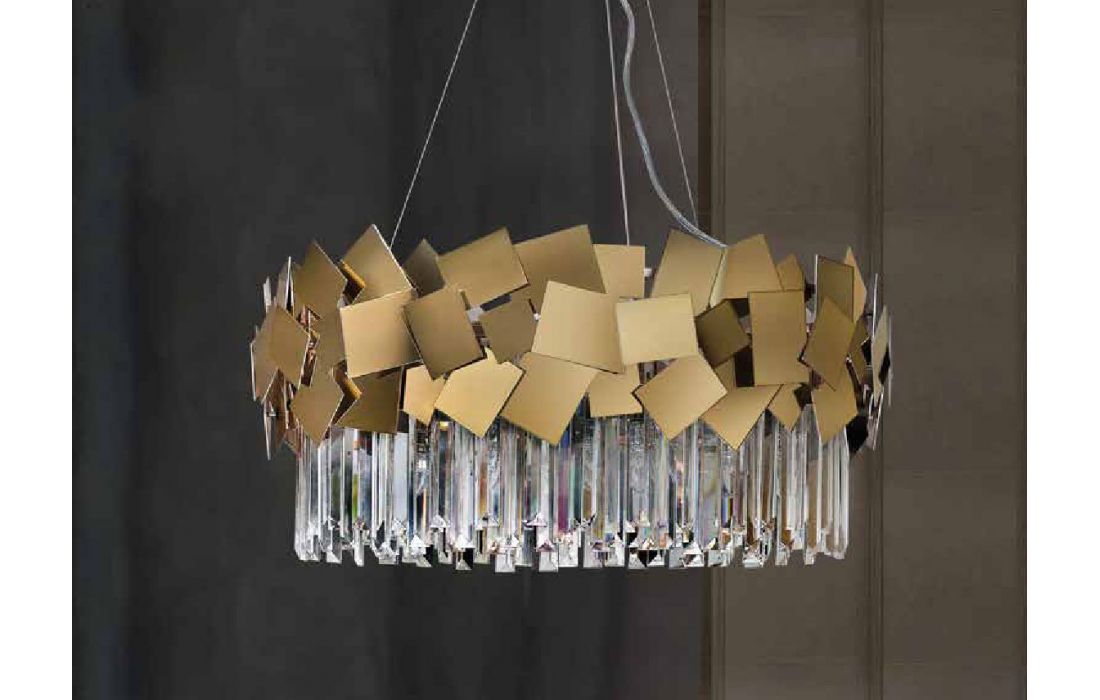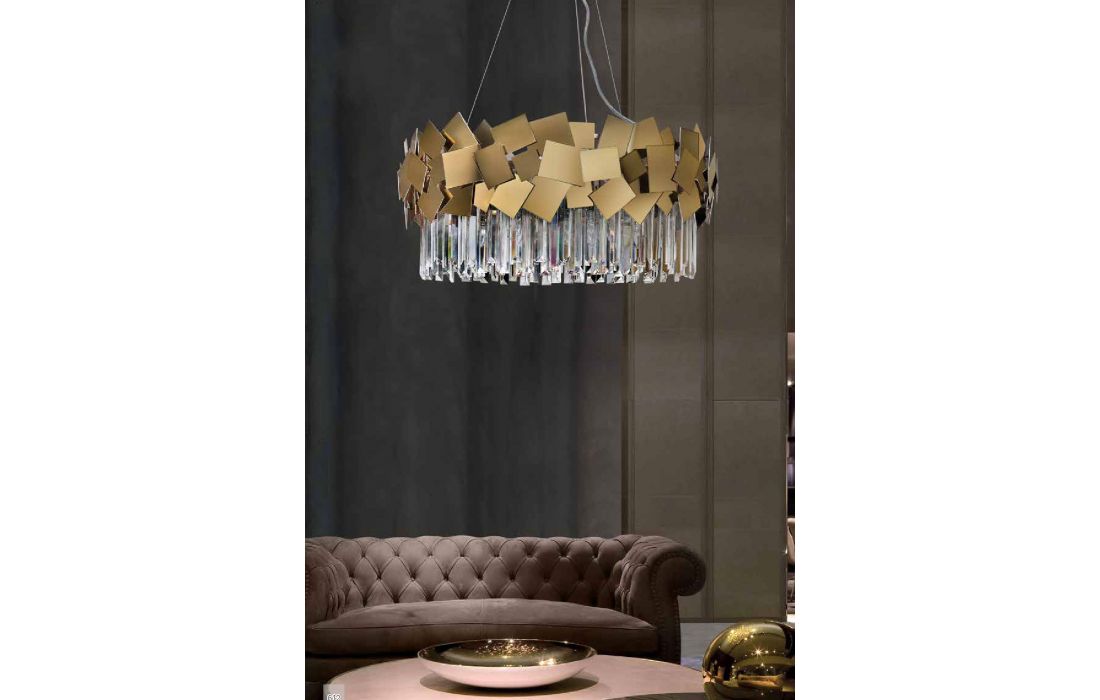 Ceiling lamp in crystal and golden brass makes it luxurious and adapts to spacious and classic spaces, from the entrance hall to dining rooms.