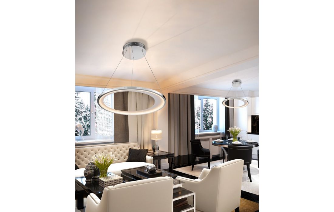 LED metal lamp in chrome and matt white finish. Adjustable height. Acrylic diffuser.