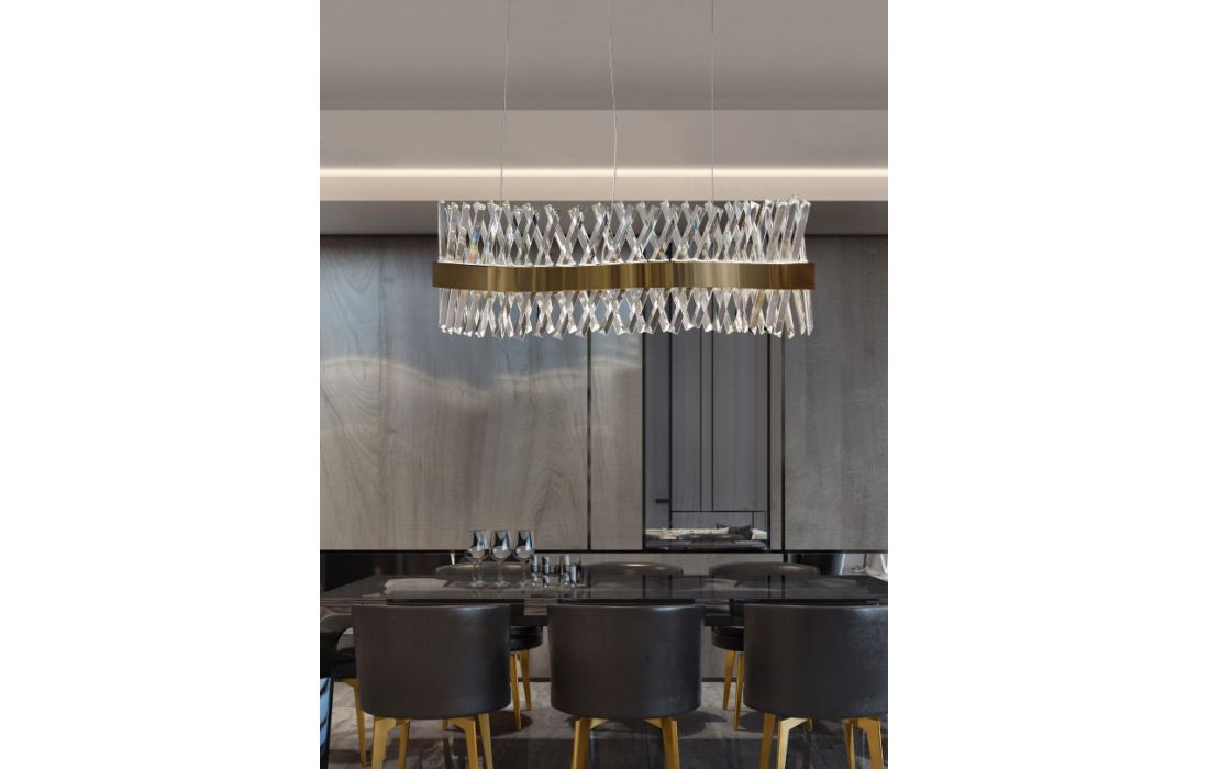 Glass ceiling lamp with shiny gold stainless steel detail that makes it luxurious.
