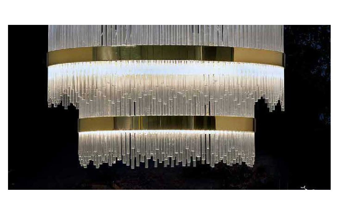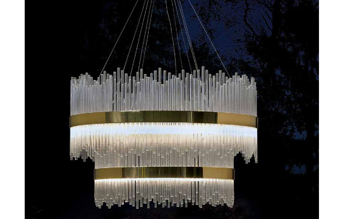 Glass ceiling lamp with brilliant golden detail makes it luxurious and suits large and classic spaces, from the entrance hall to the dining rooms.