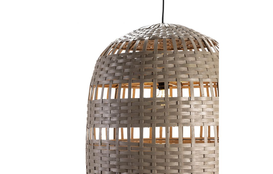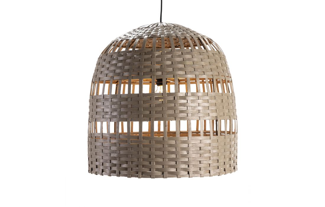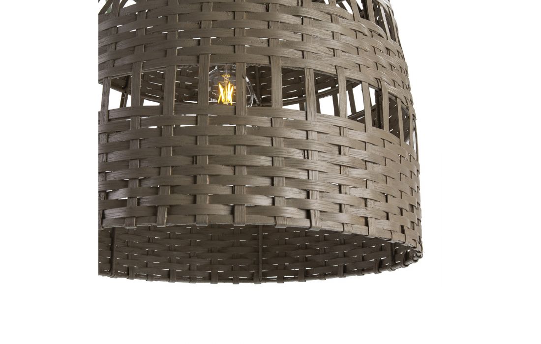 Gray wicker ceiling lamp.