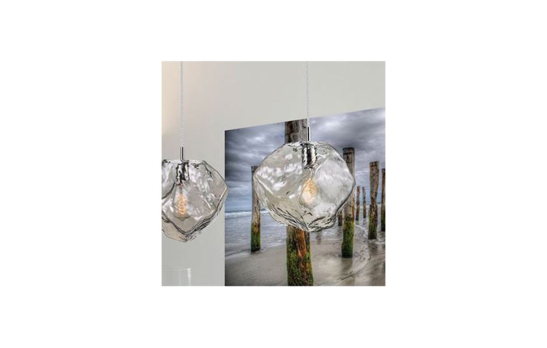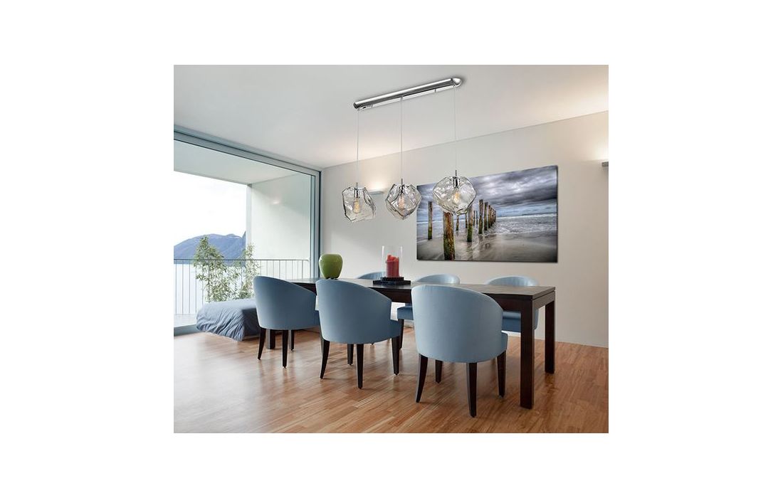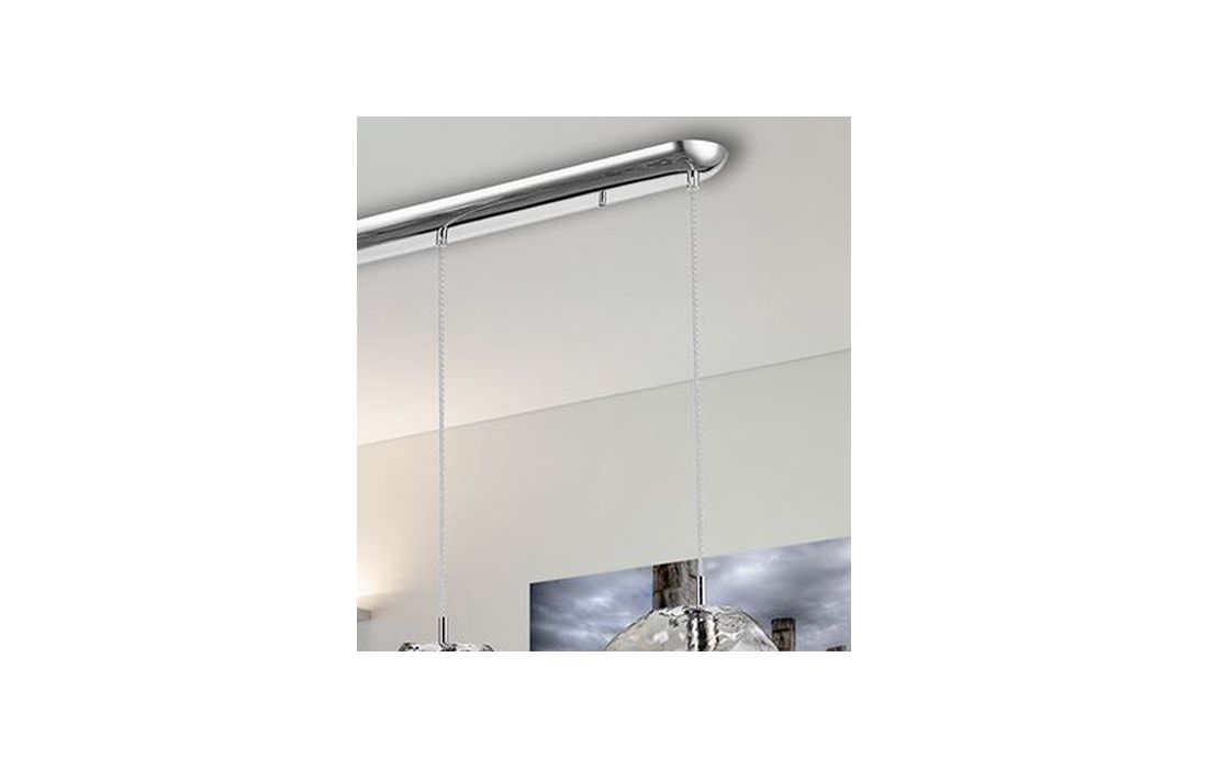 Lamp of 3 lights, made in chrome finish metal. Large tulips in clear smoke tone glass. Height adjustable.
