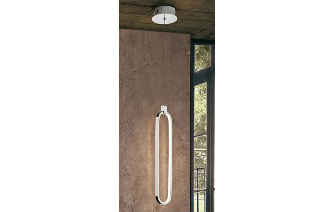 Ceiling lamp 1 LED light made of aluminum with chrome finish. Opal silicone diffusers. Height adjustable.