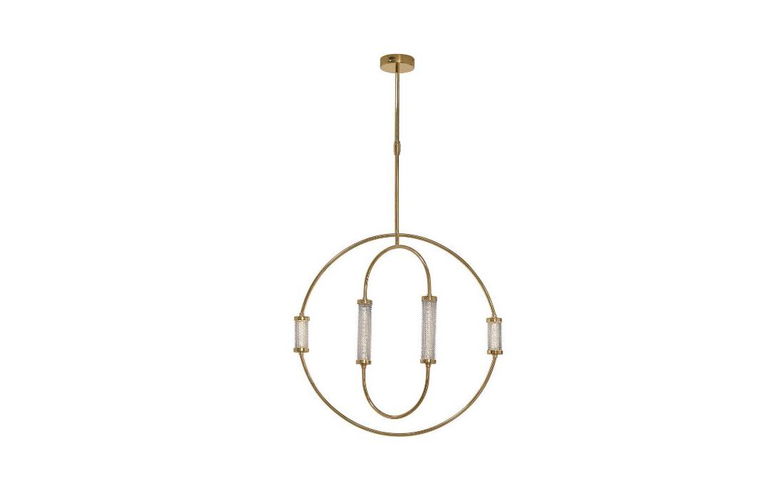 Ceiling lamp in stainless steel and glass.