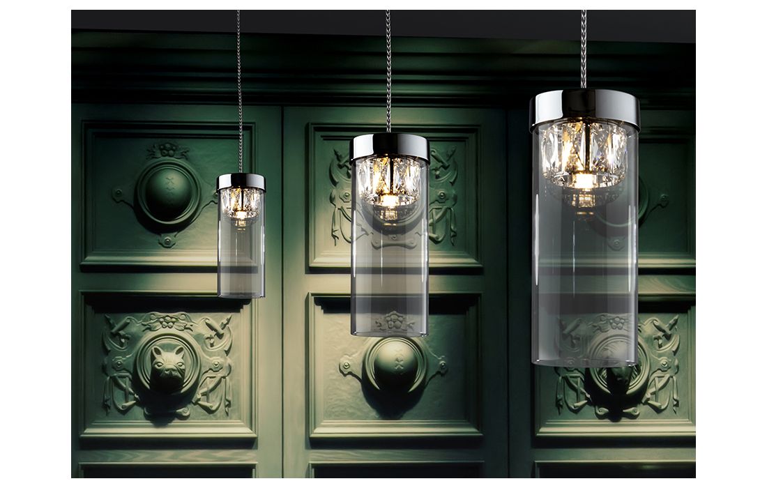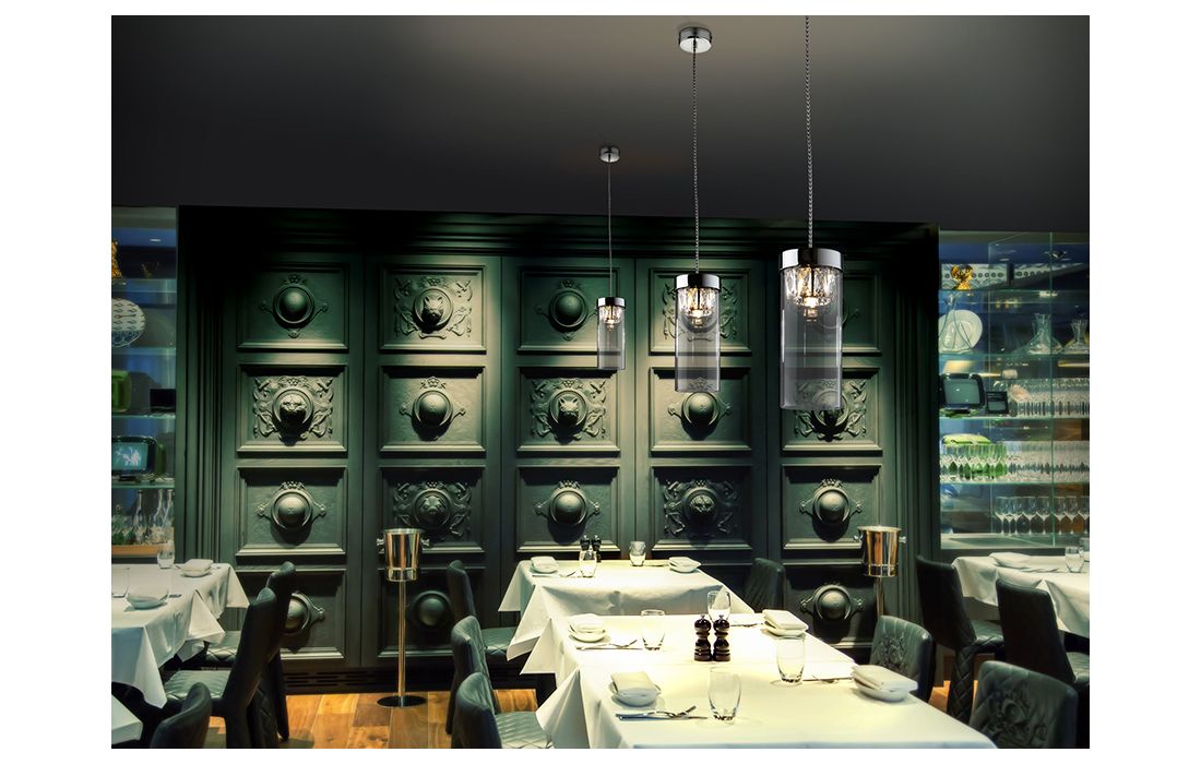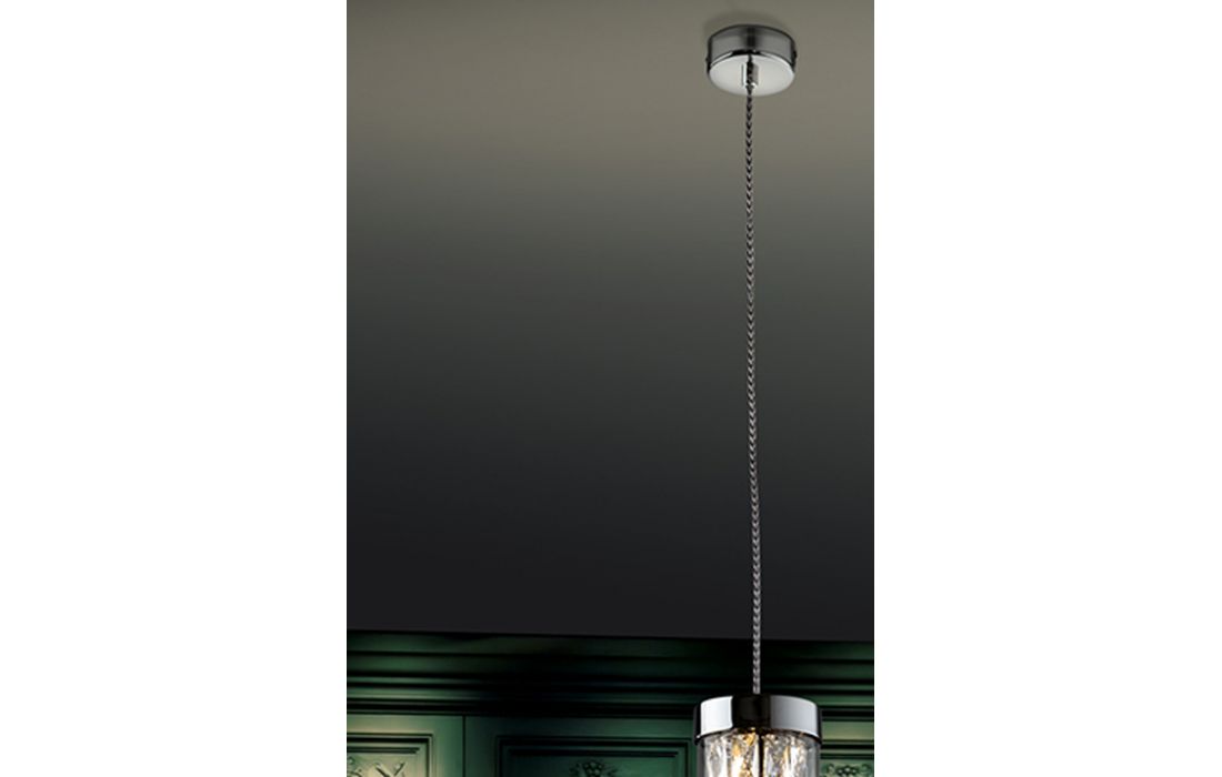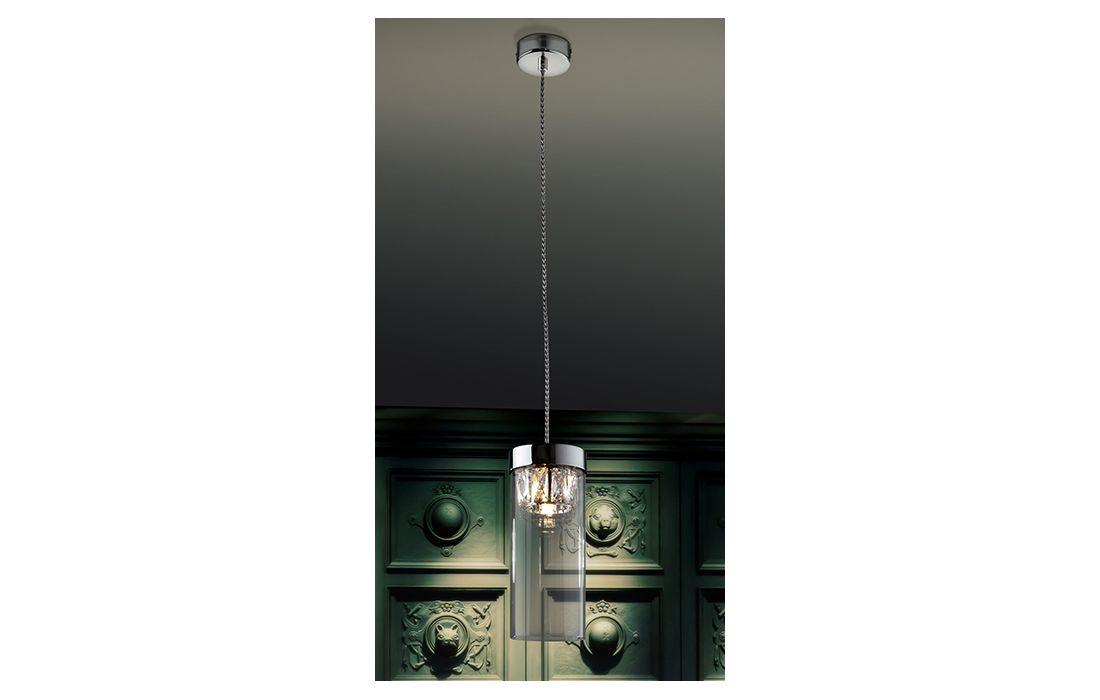 Ceiling lamp 1 light in chrome finish metal, with cylindrical outer tulip and inner faceted glass frame.