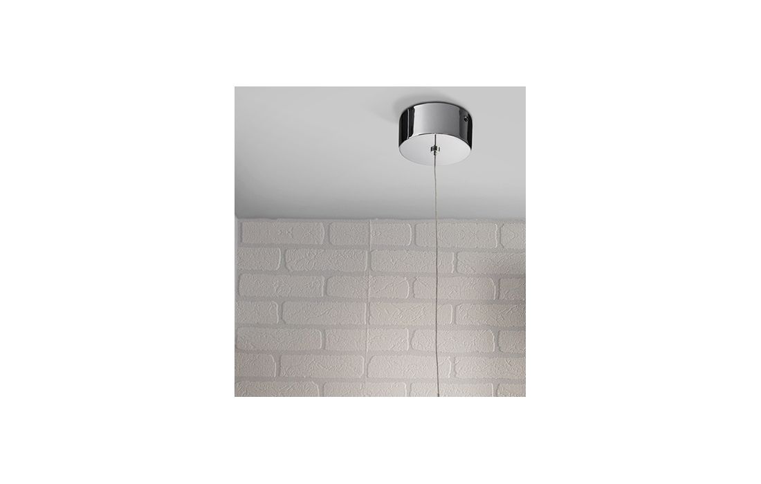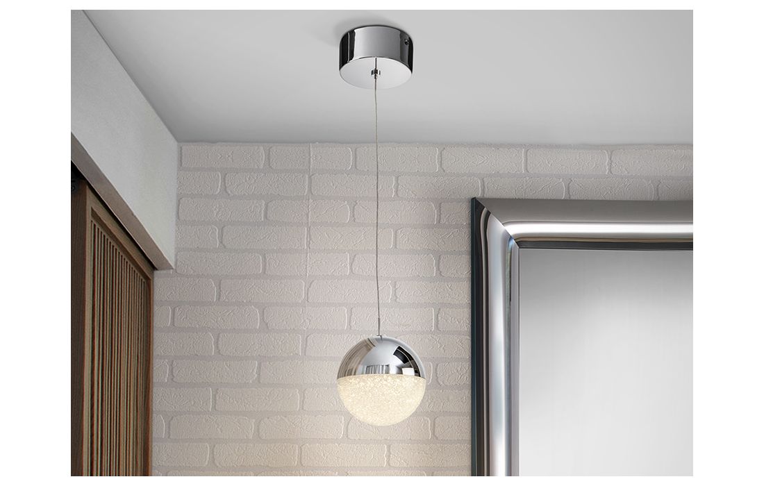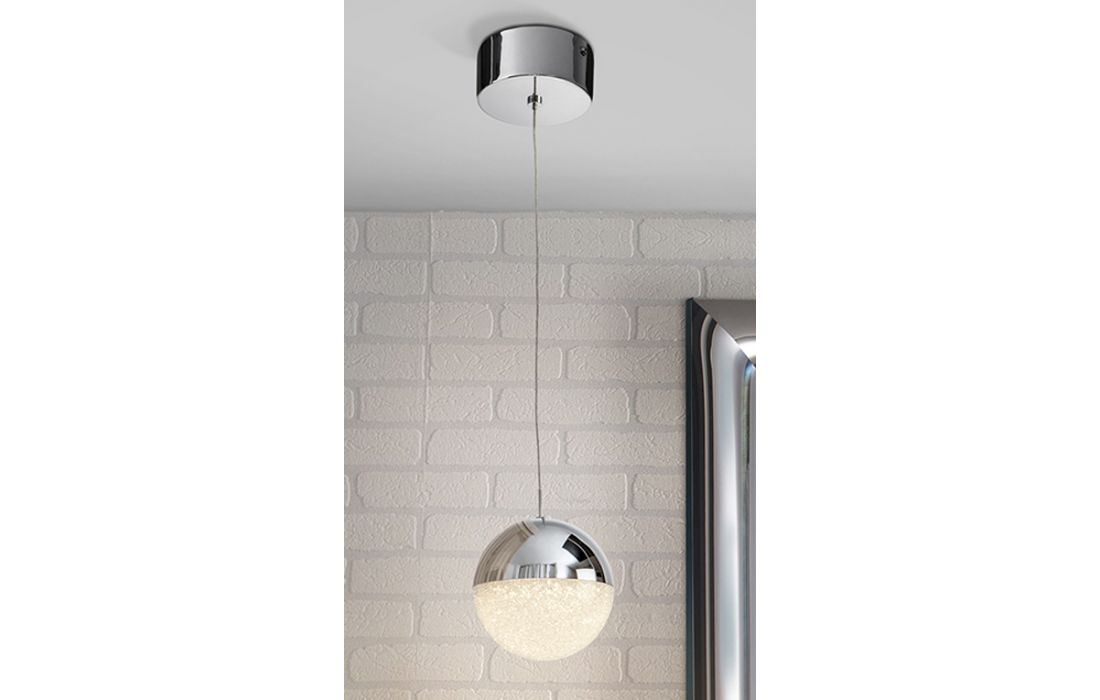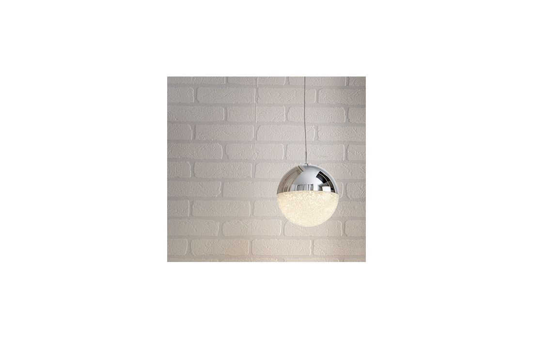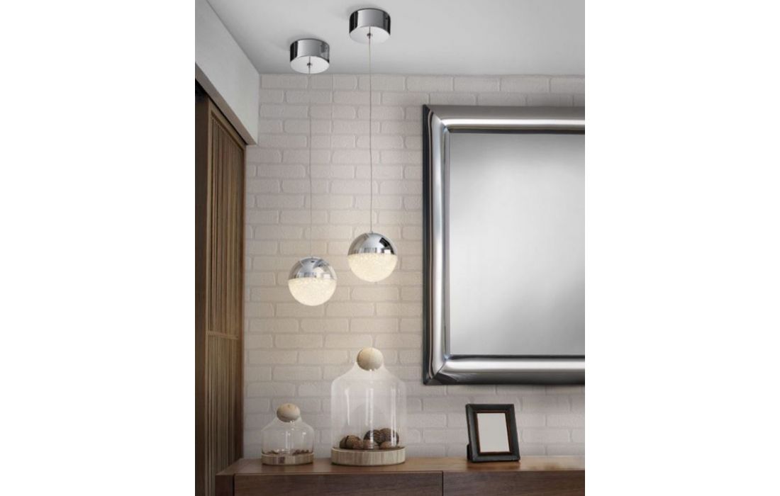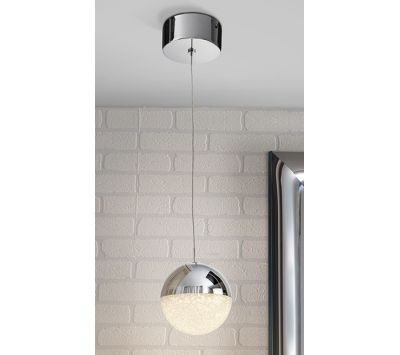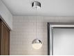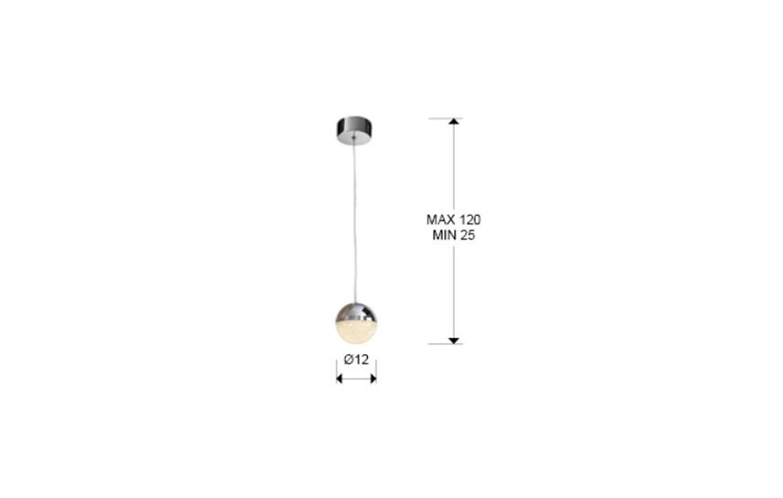 Ceiling lamp 1 light made of chrome finish metal. Spherical 12 cm metal and polycarbonate tulip with textured interior. Height adjustable.