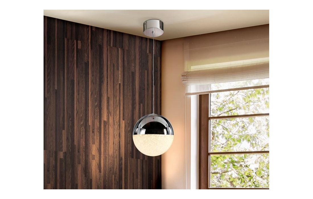 Ceiling lamp 1 light made of chrome finish metal. Spherical 20 cm metal and polycarbonate tulip with textured interior. Height adjustable.