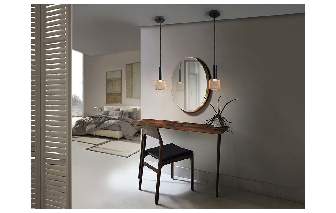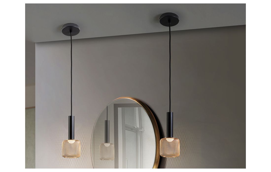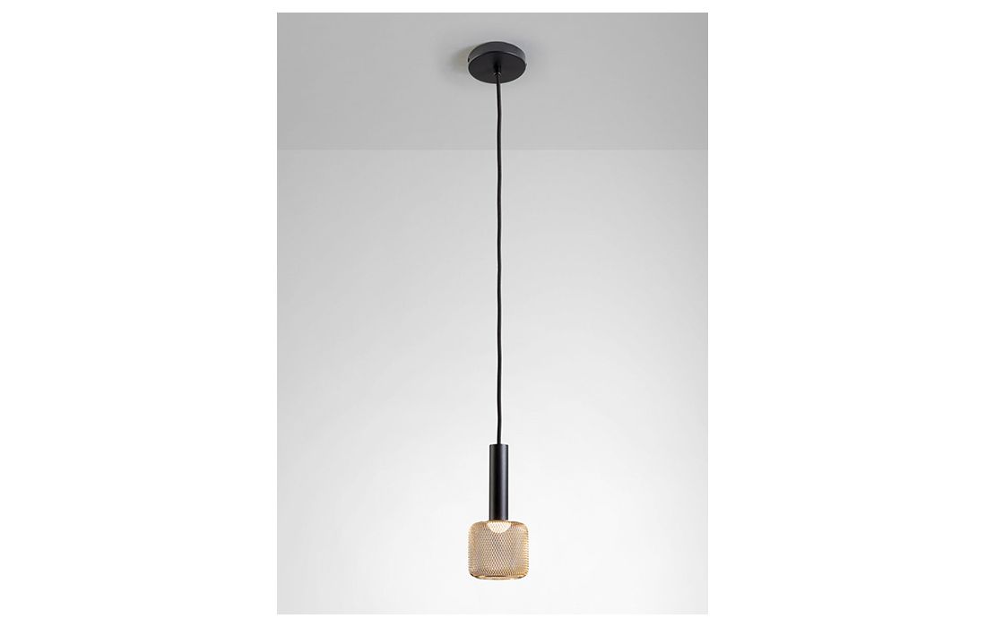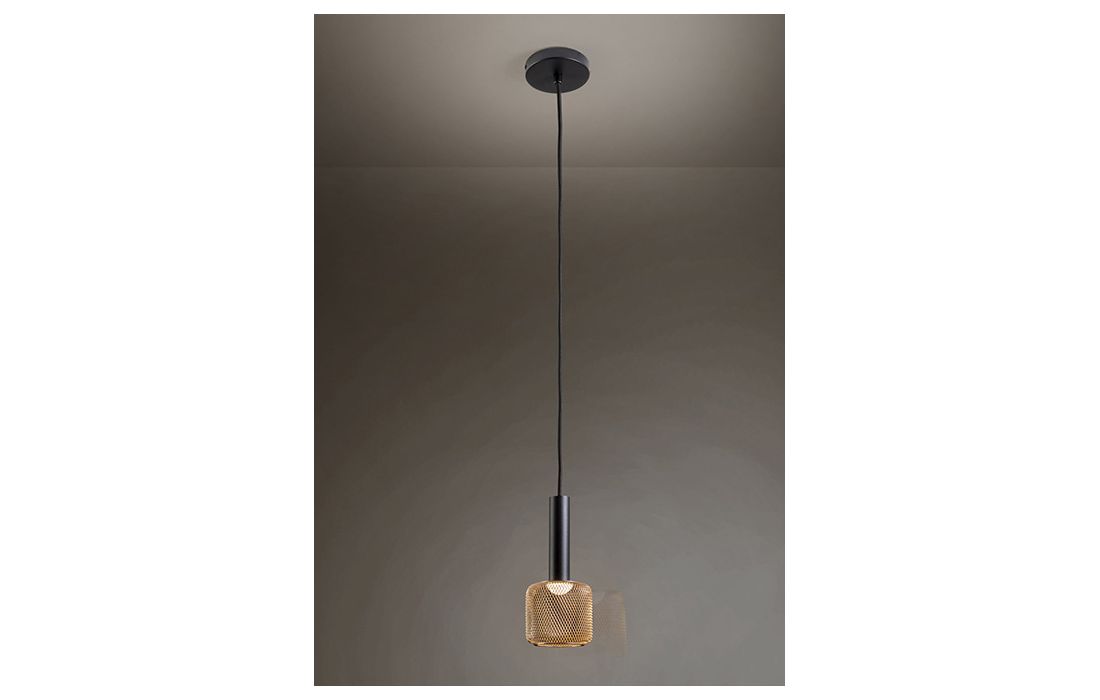 LED ceiling lamp with 1 light in matt black metal and glitter gold metallic mesh tulip, opaline acrylic diffuser.