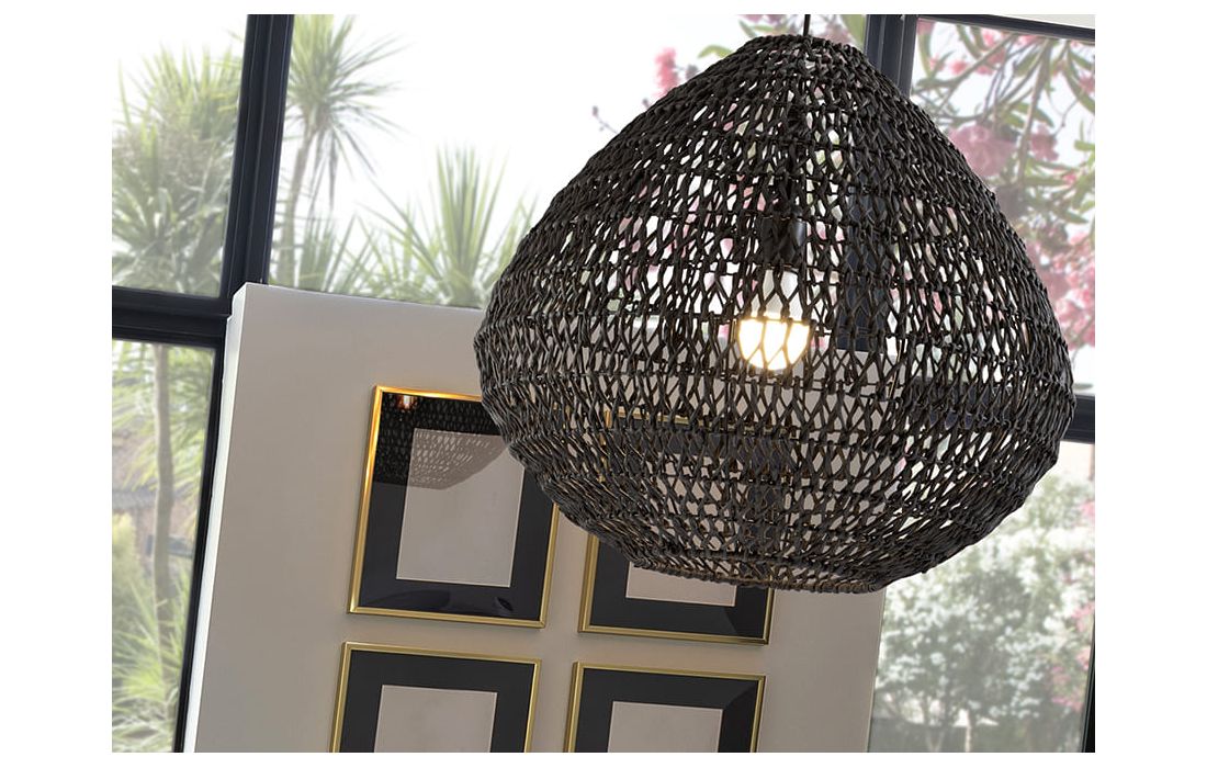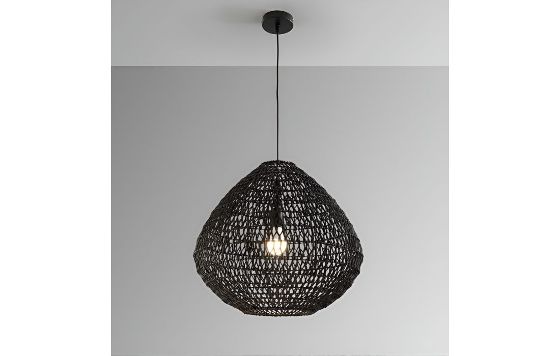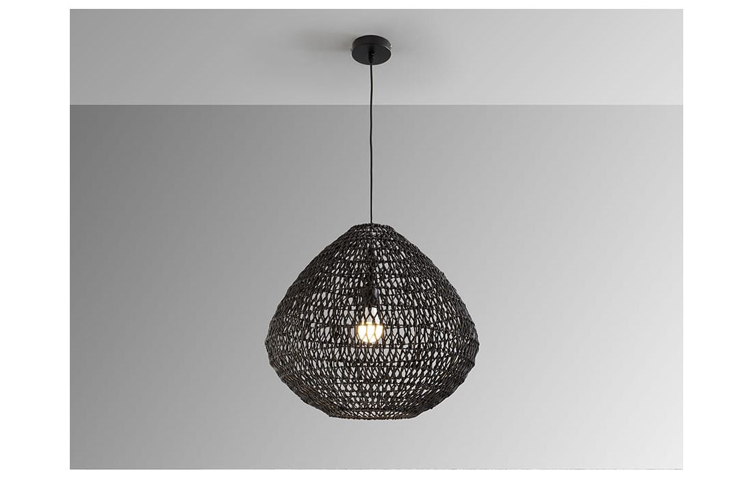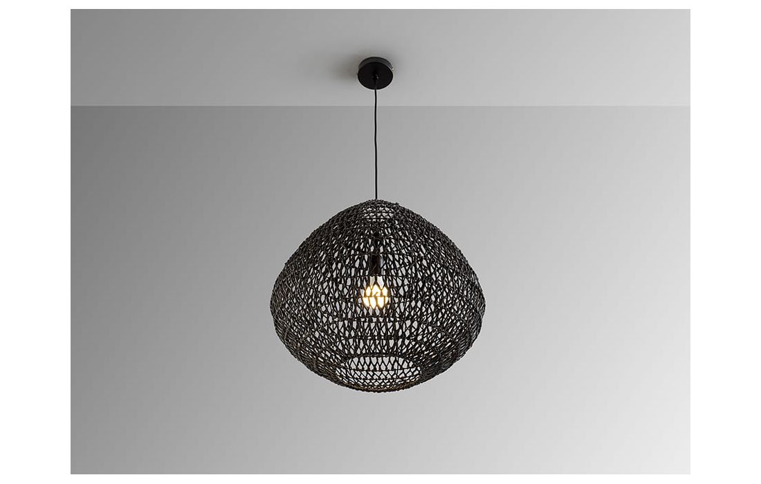 Ceiling lamp with 1 light made of metal and braided paper corded lampshade. Black finish.