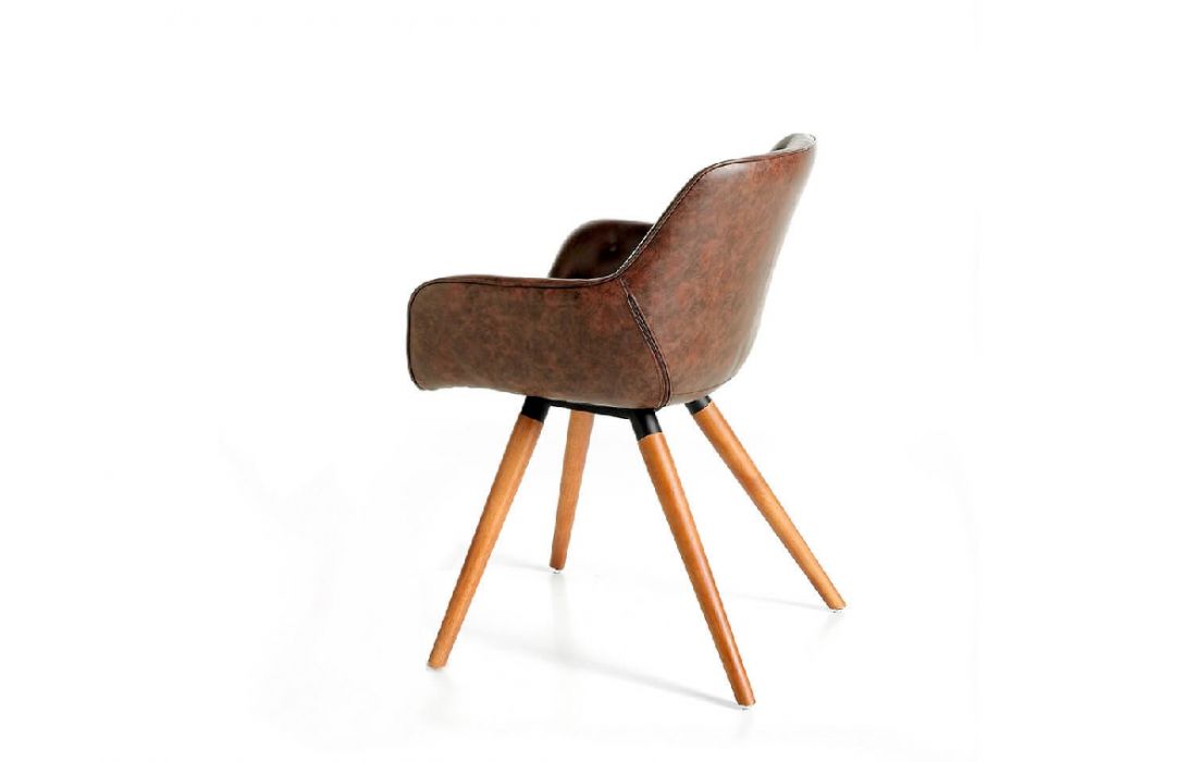 Modern design chair with seat and back upholstered in synthetic leather and walnut-colored wooden legs, with its avant-garde and timeless styleRecipient :