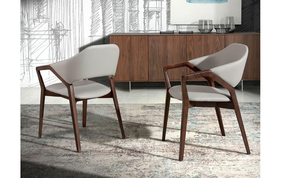 Armchair upholstered with wooden feet walnut colored ash in various finishes and coatings possible.