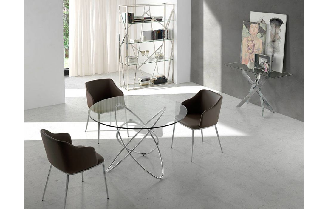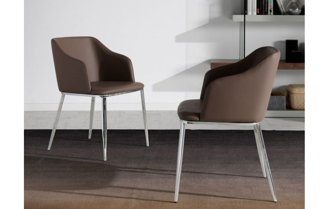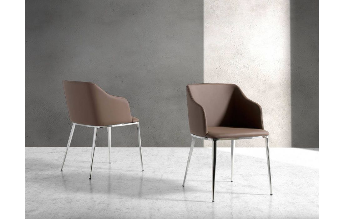 Dining chair upholstered in leatherette and chromed stainless steel frameRecipient :