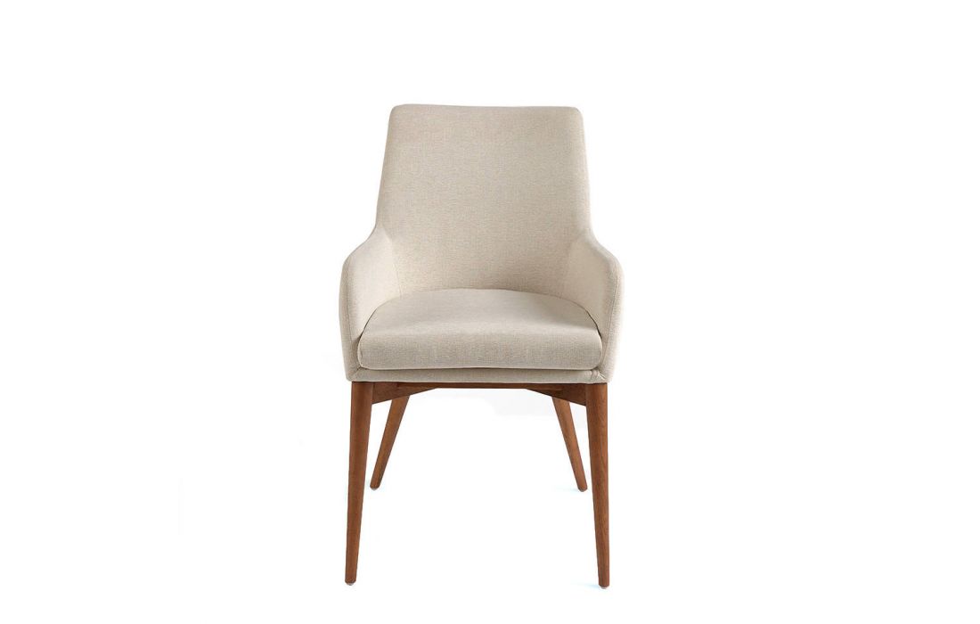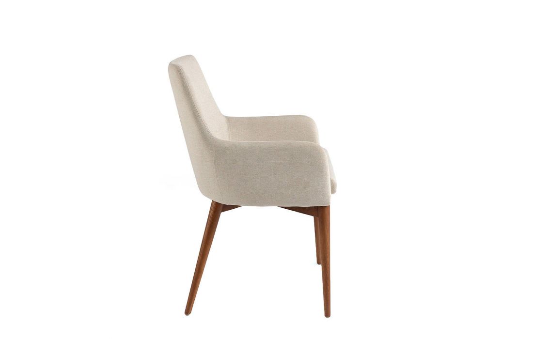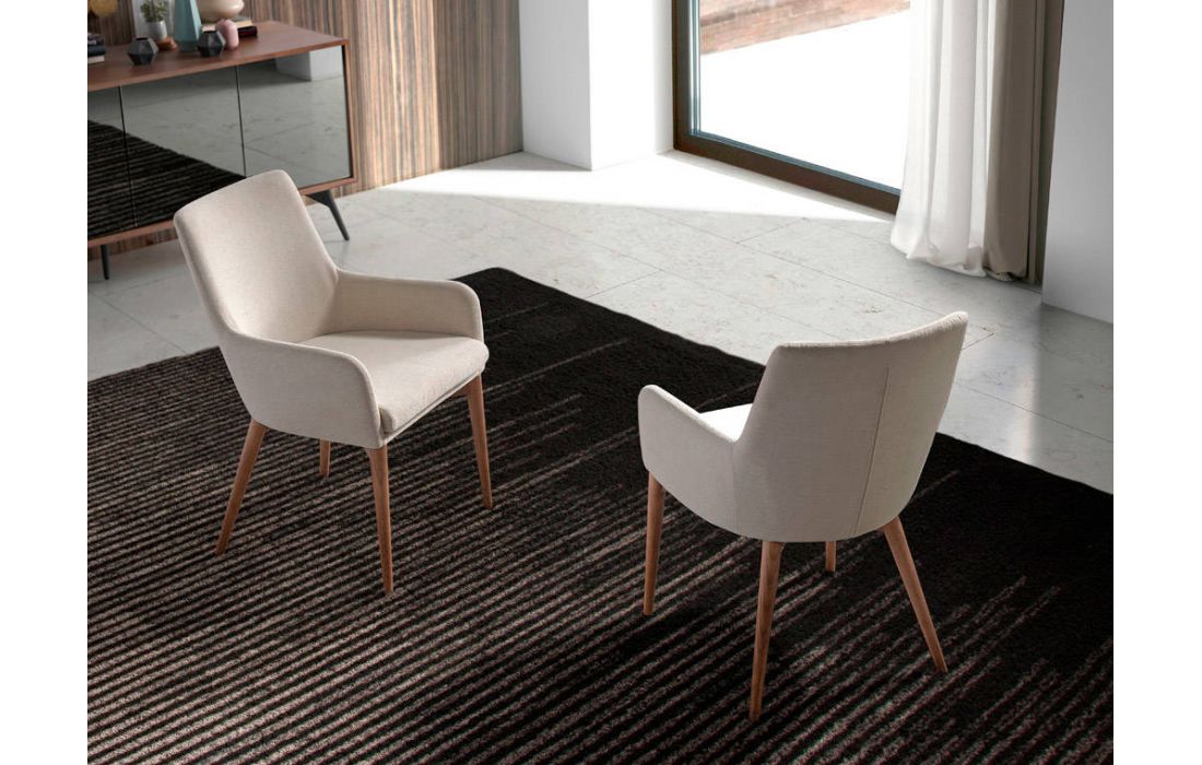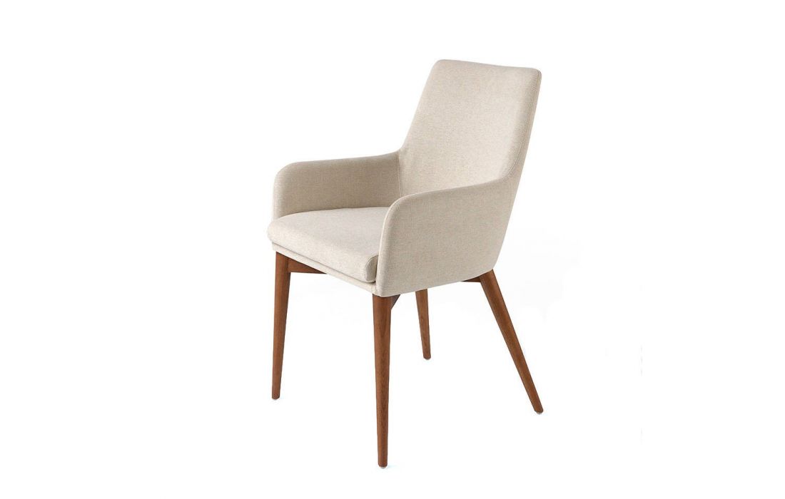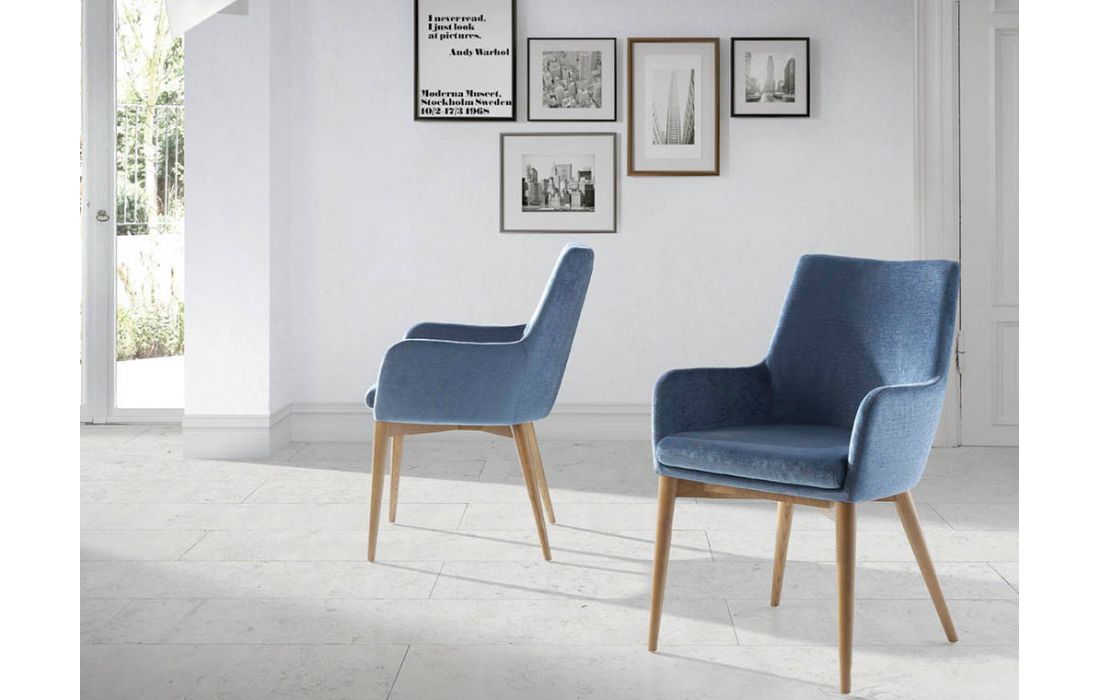 Dining armchair with fabric upholstered arms and walnut-coloured ash wood leg structureRecipient :