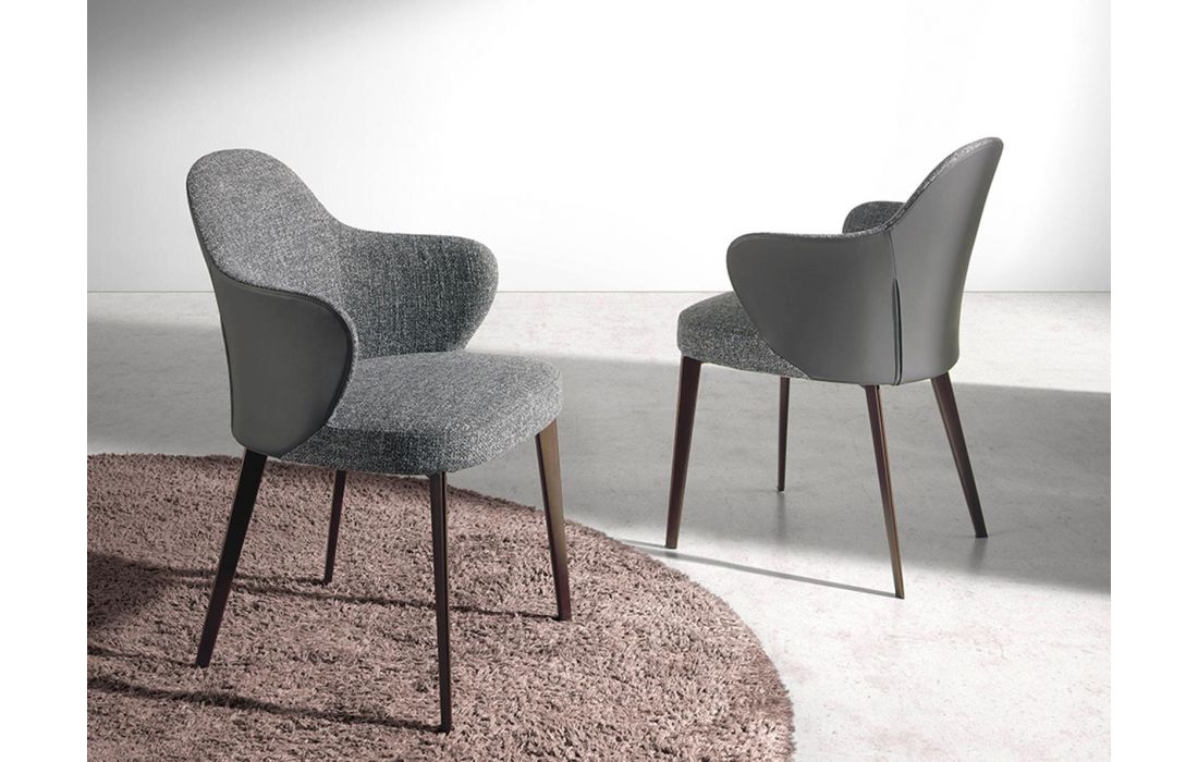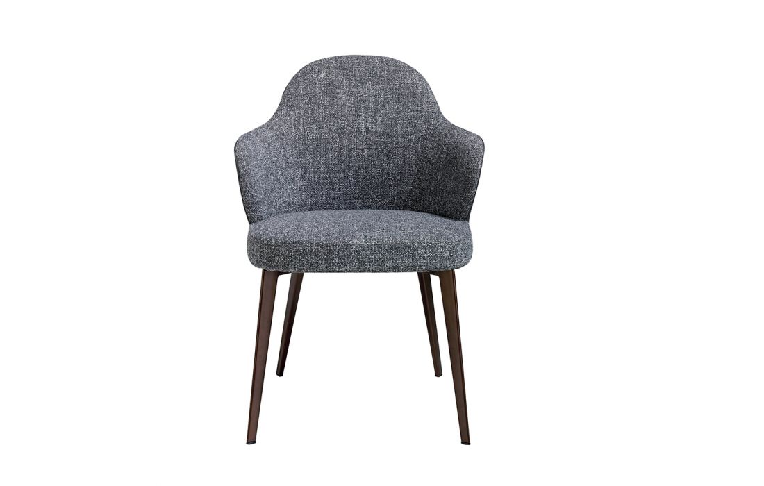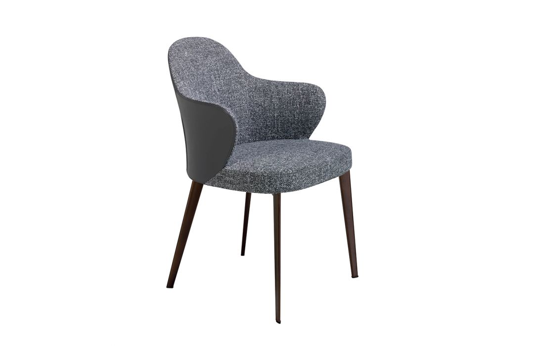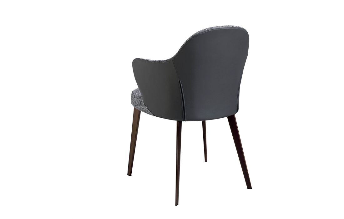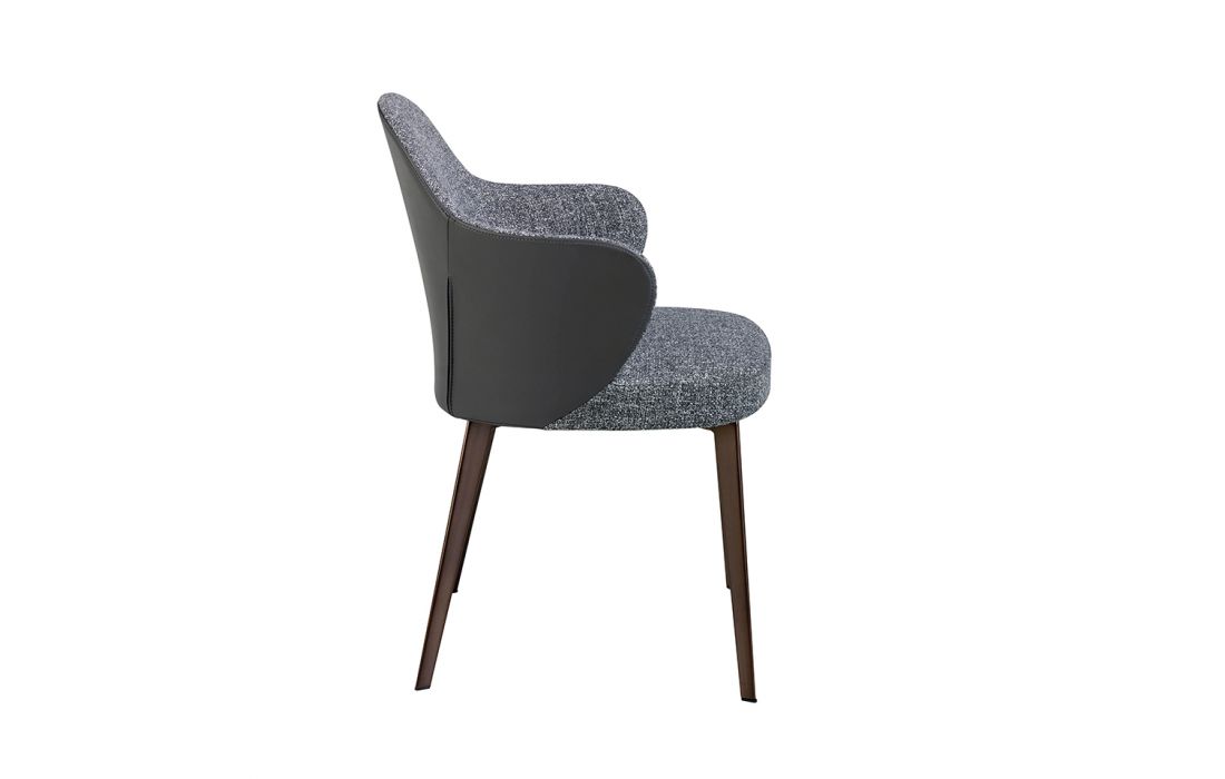 Dining armchair upholstered in fabric and faux leather with steel legs structure in metallic dark bronzeRecipient :