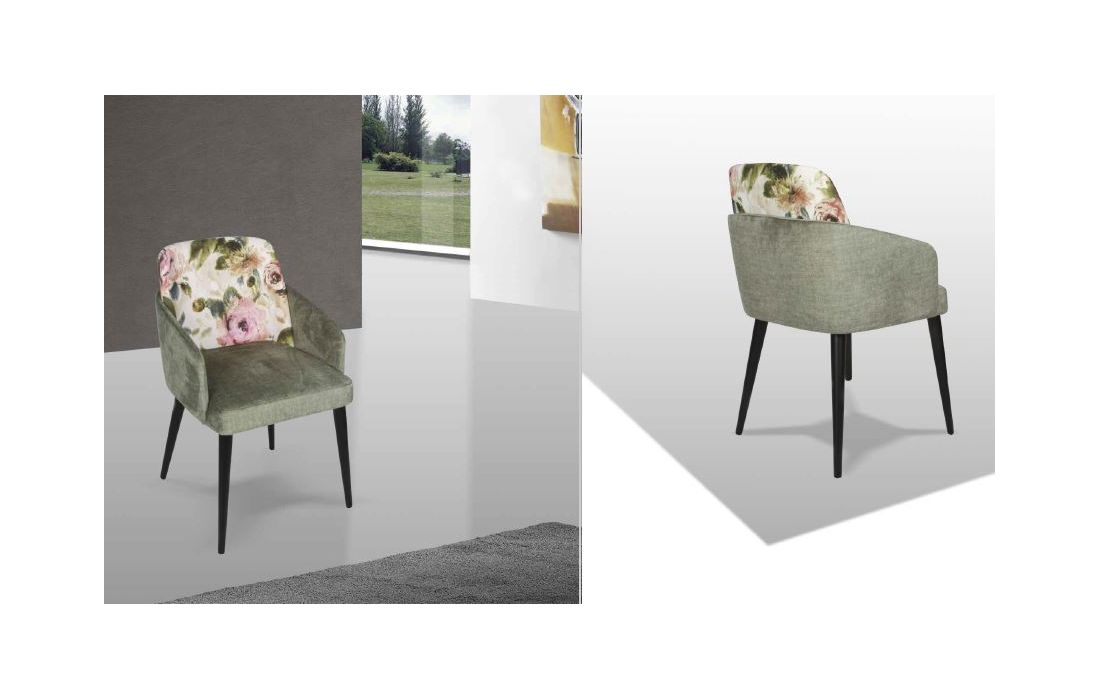Chair with upholstered arms with solid ash wood feet in the various possible finishes and coatings.