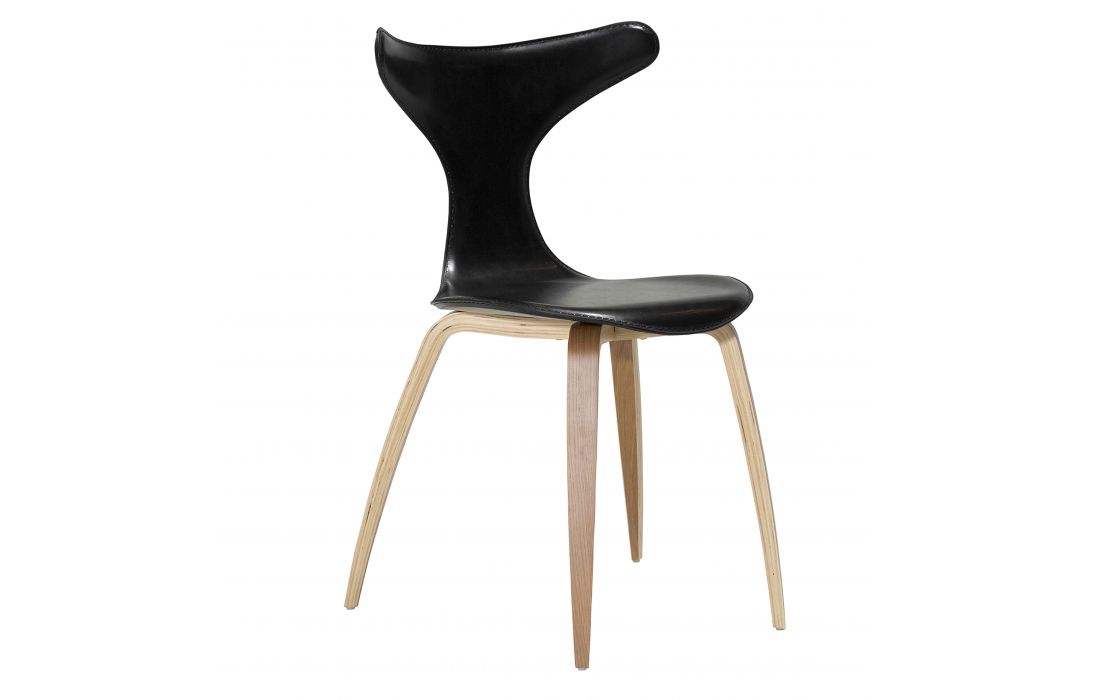 Chair with upholstered in regenerated leather with black feet in oak solid wood