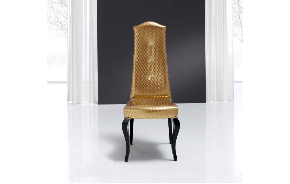 Chair with structure in wood in the various finishes and possible coatings with three swarovski buttons.