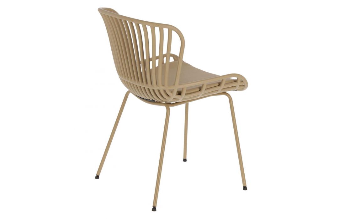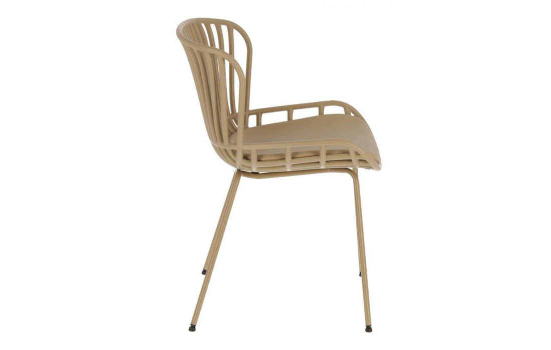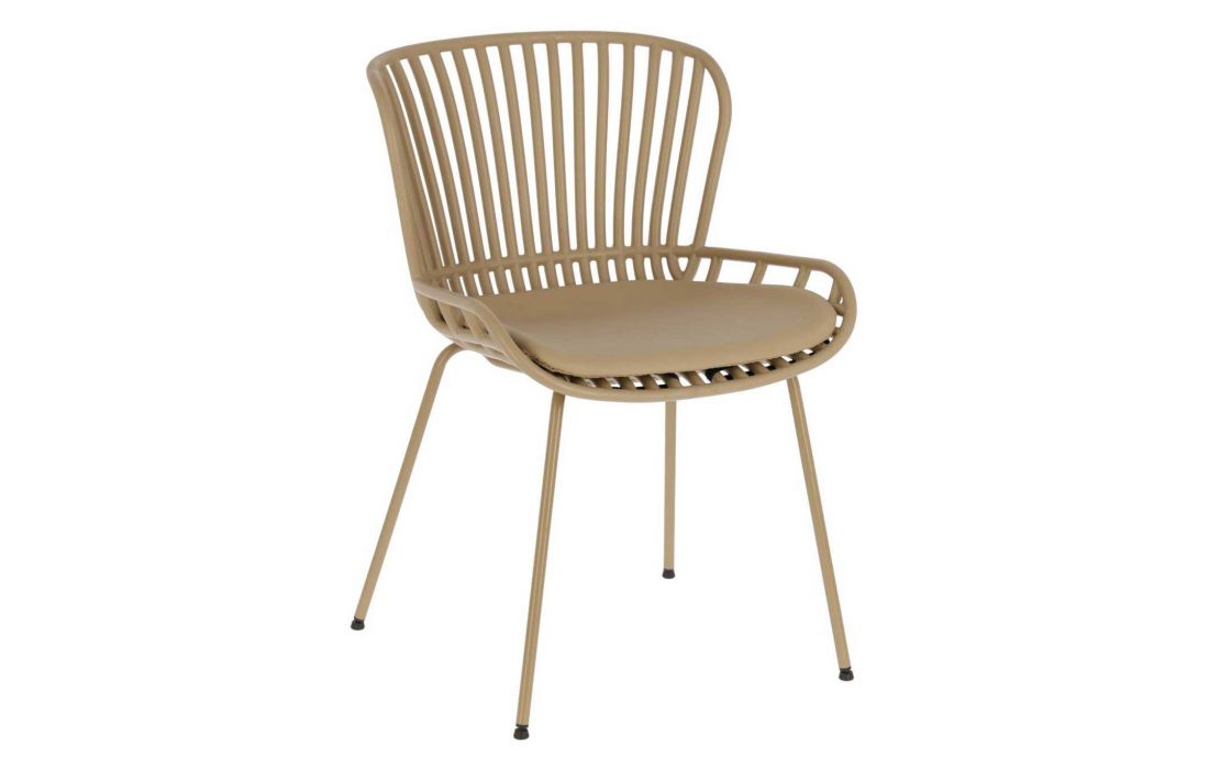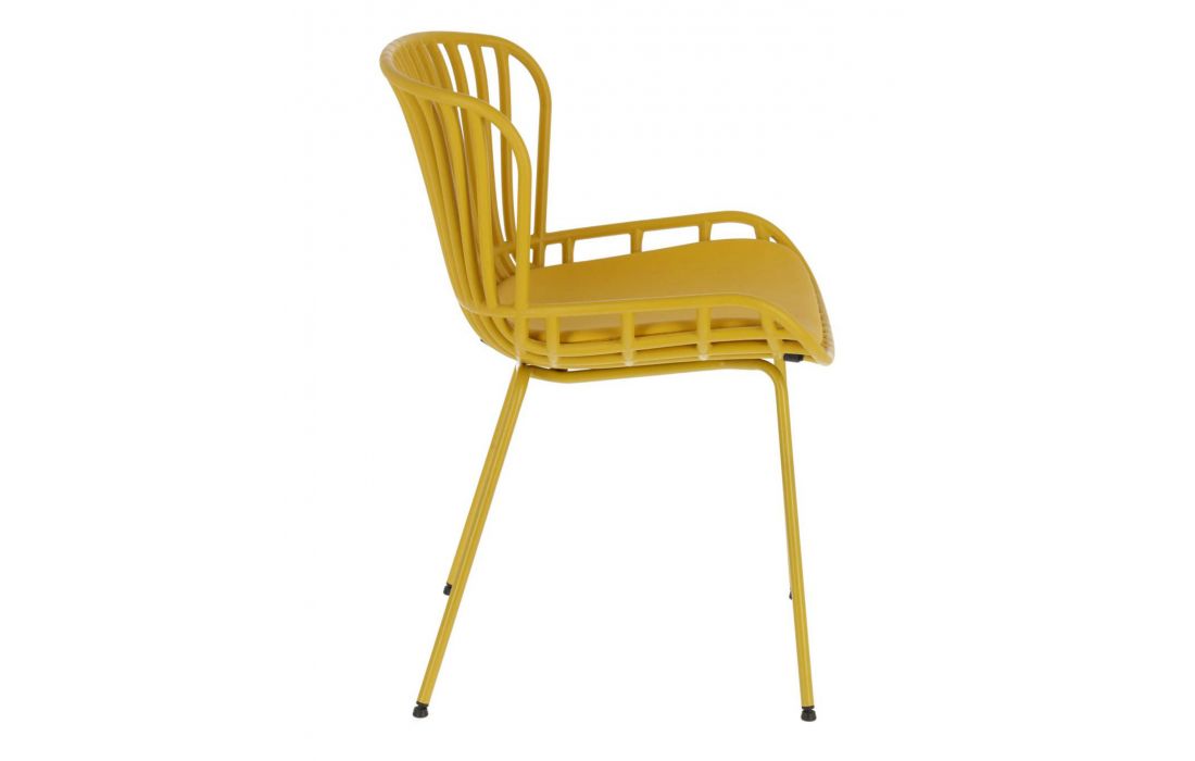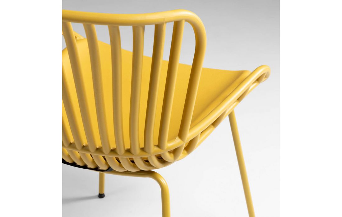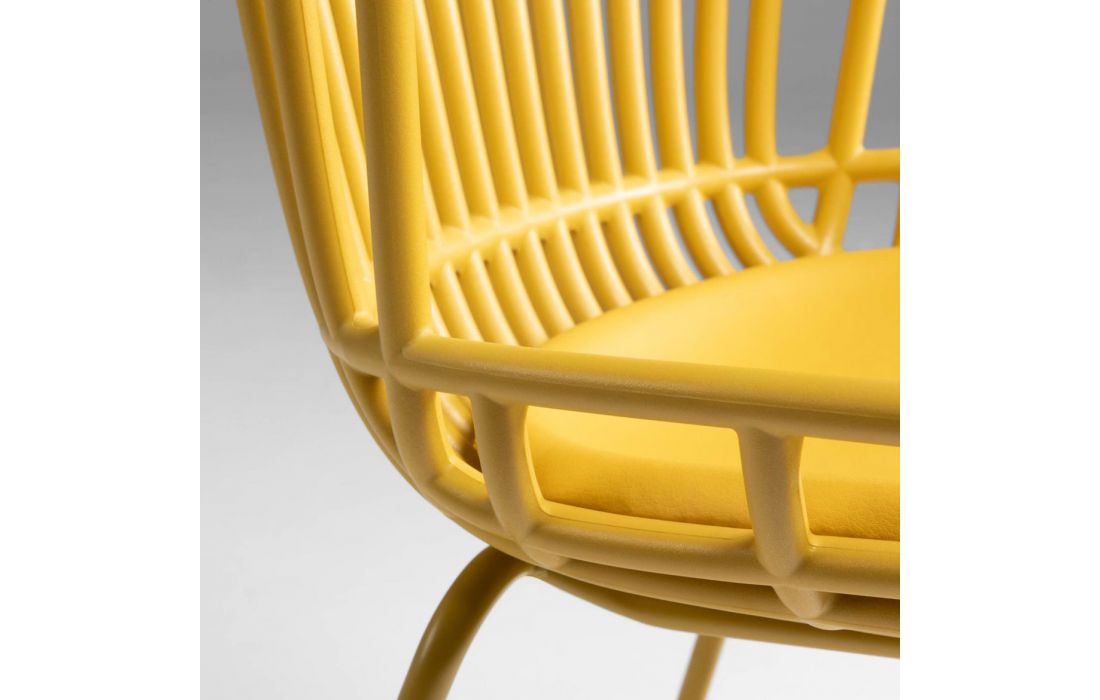Chair made of plastic with a synthetic leather cushion with 3 colors available, Black, Beige and Mustard.