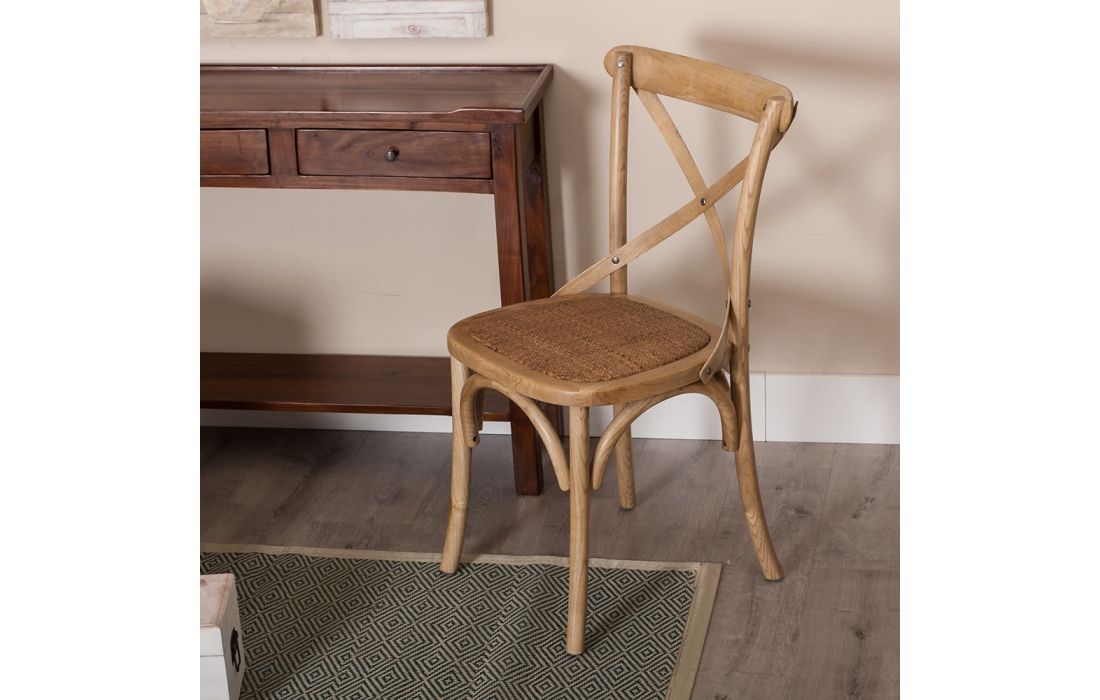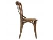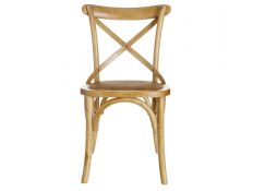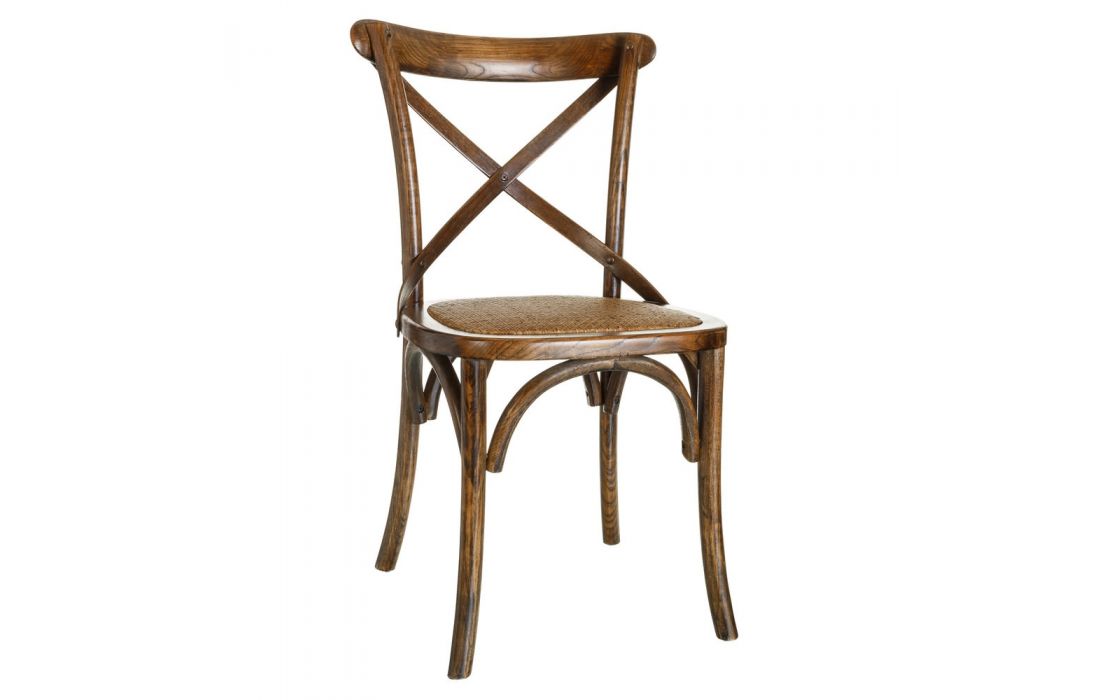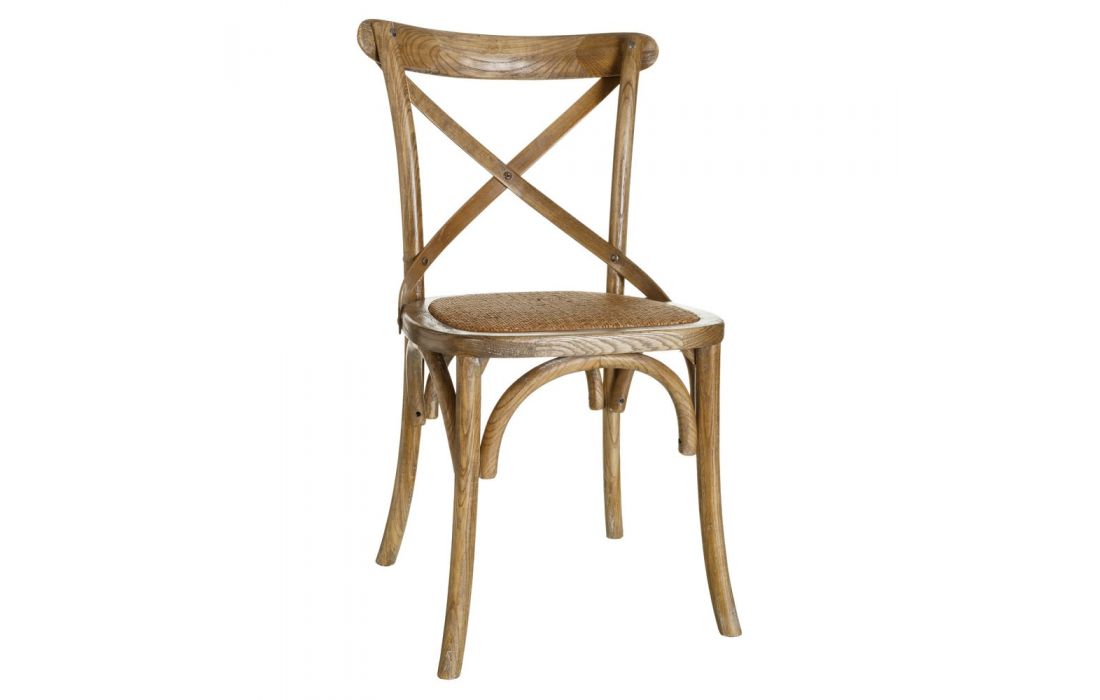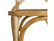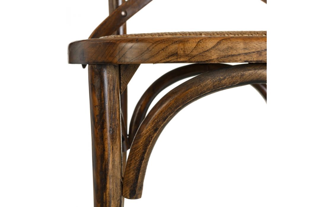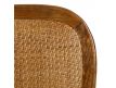 Armchair with natural, light brown and dark brown colored rattan structure.