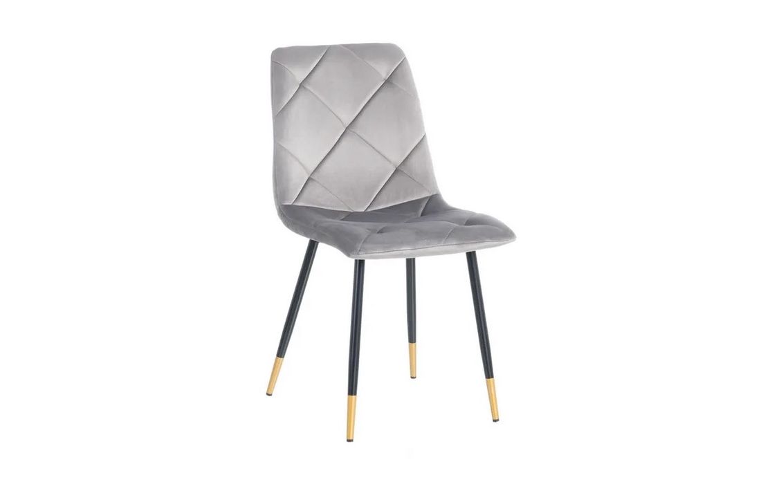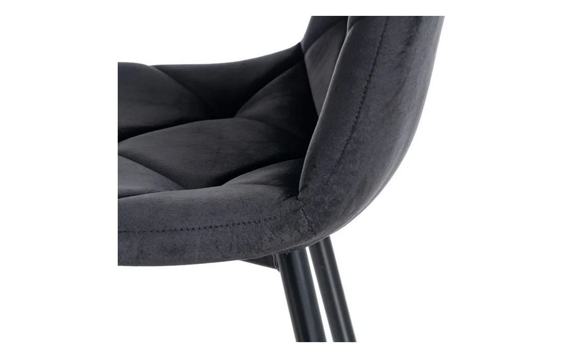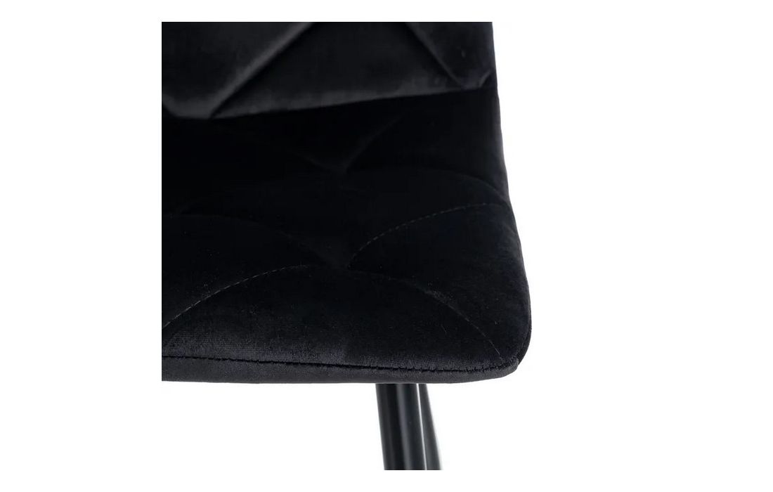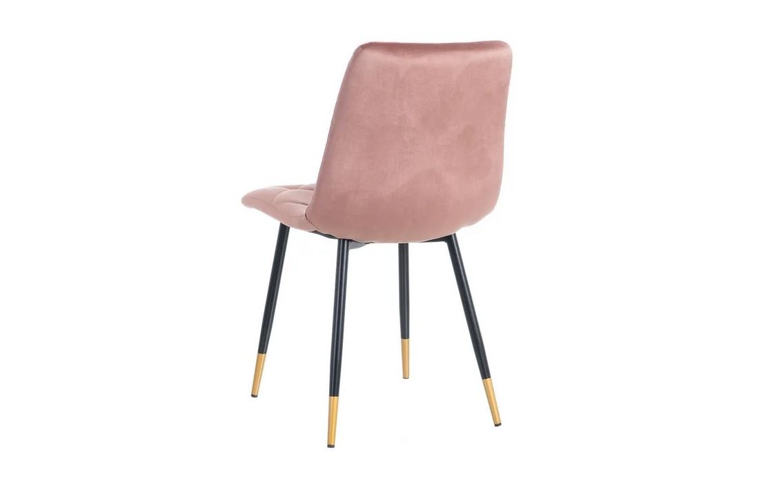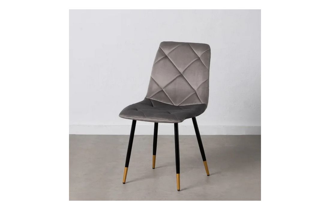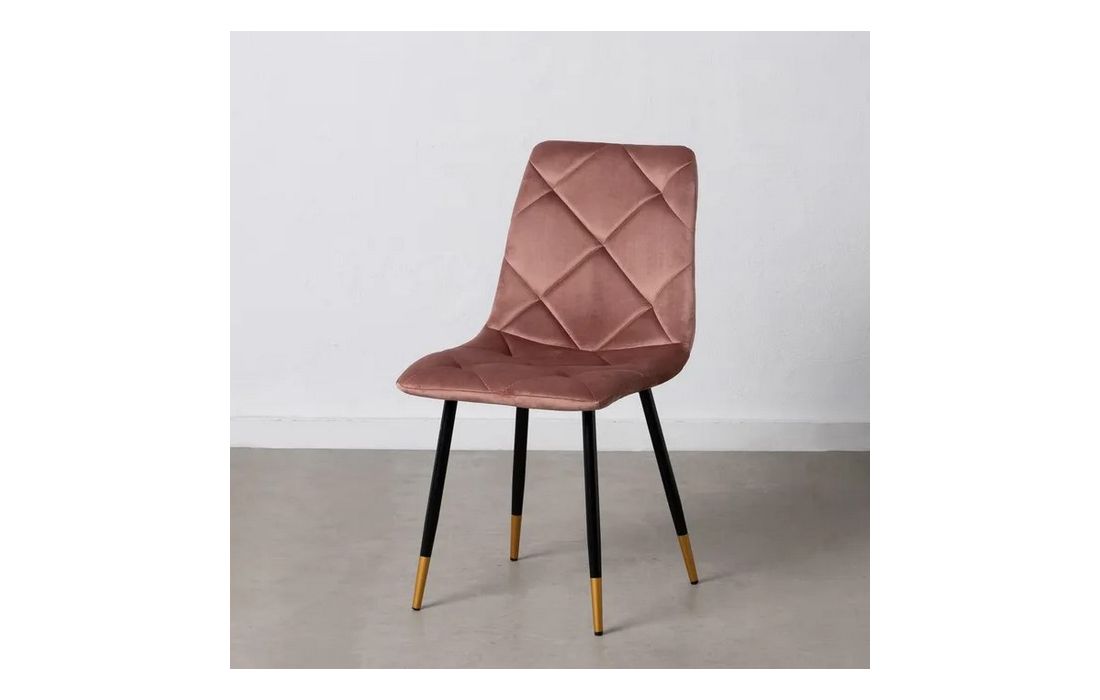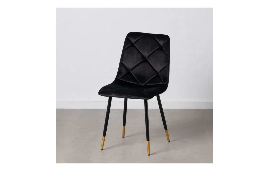 Chair made of black metal with golden detail on the legs and in velvet fabric.