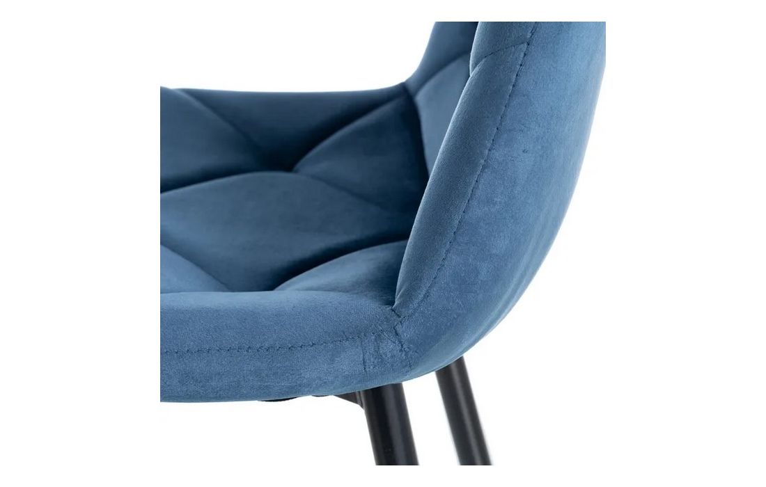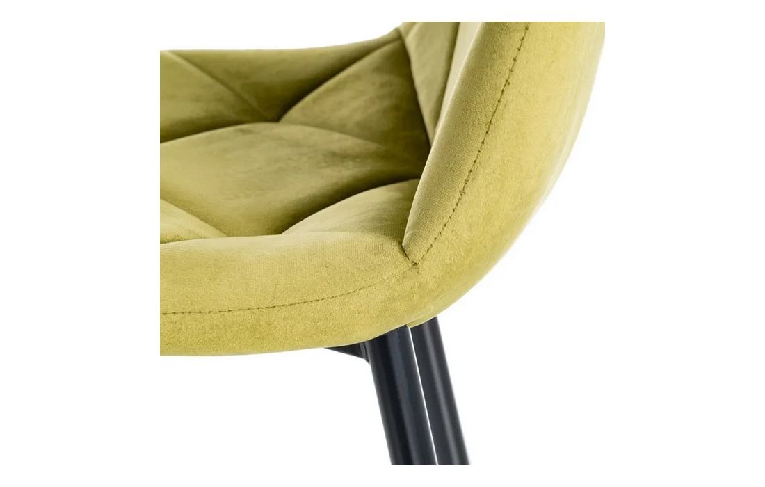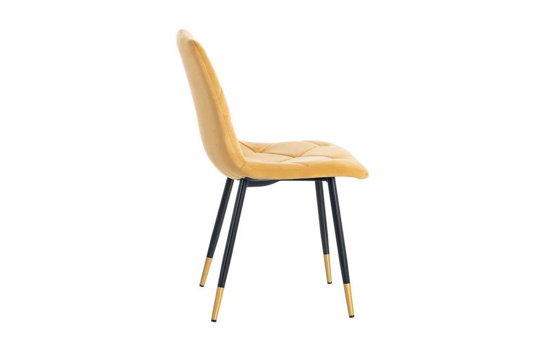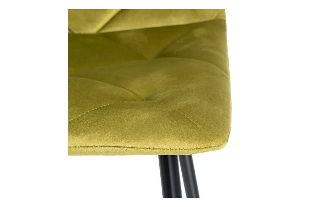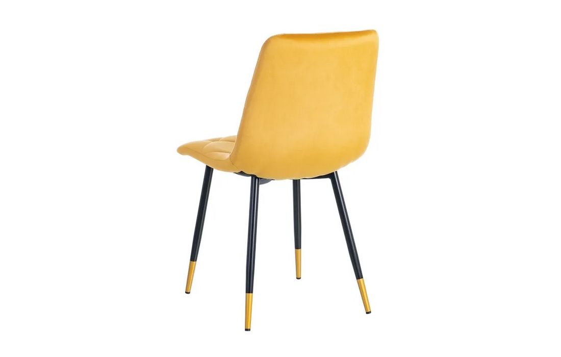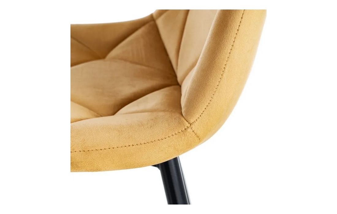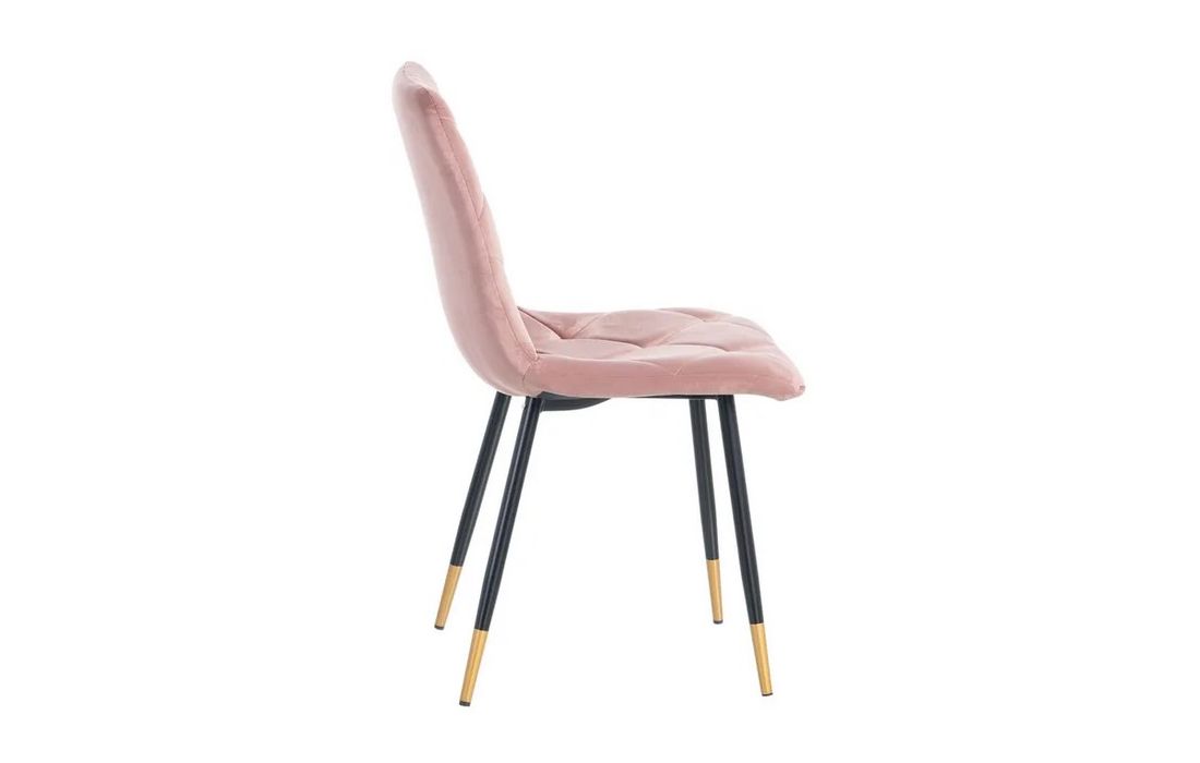 Chair made of black metal with golden detail on the legs and in velvet fabric.