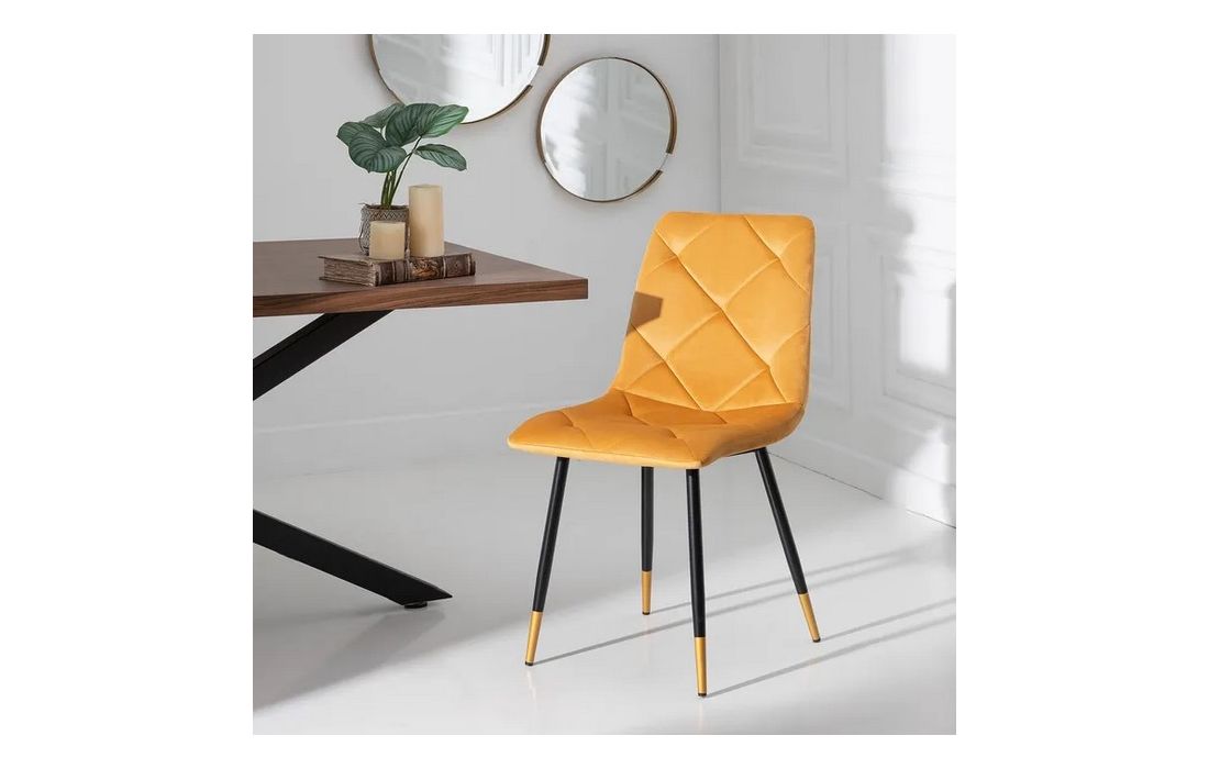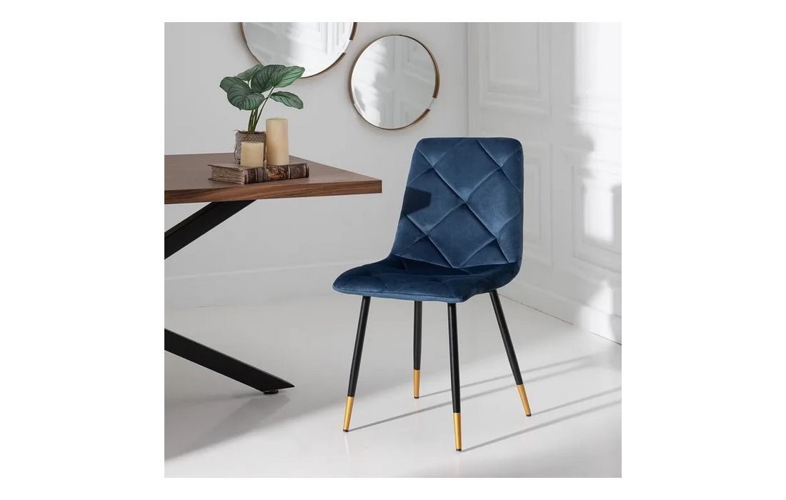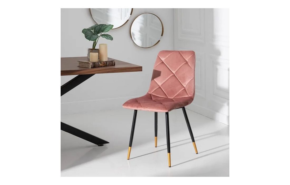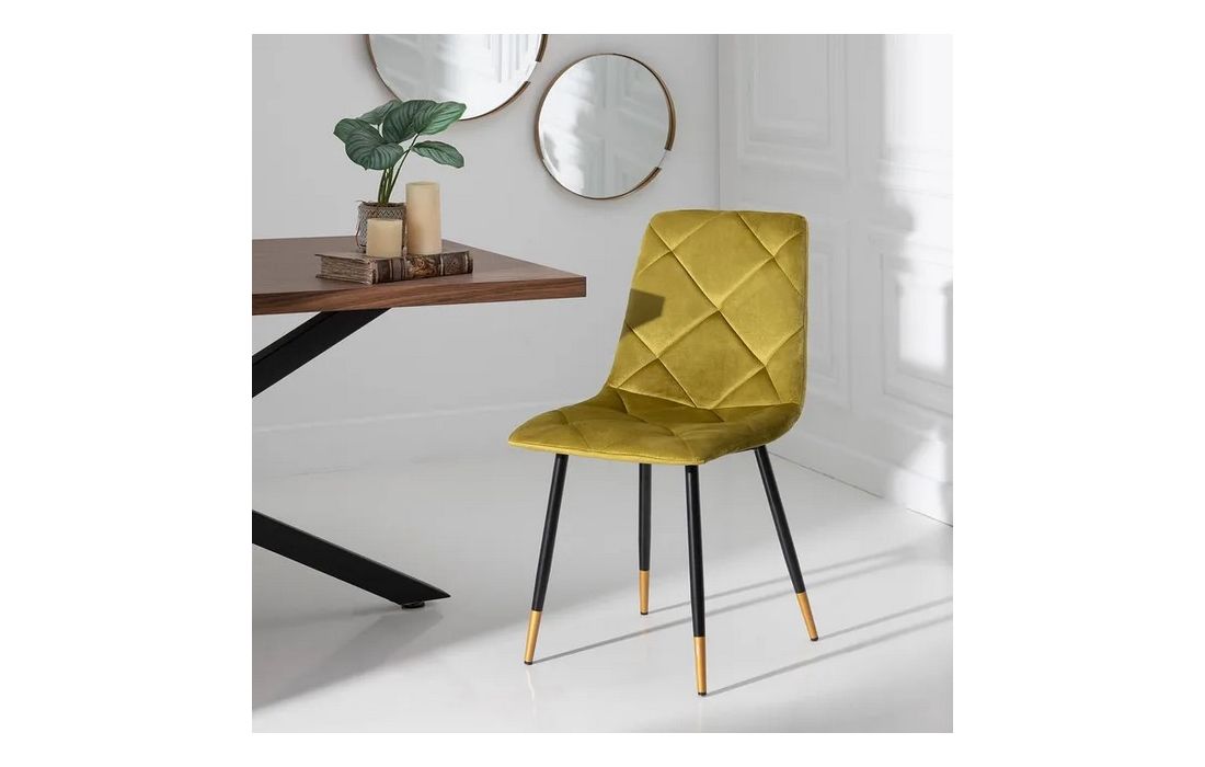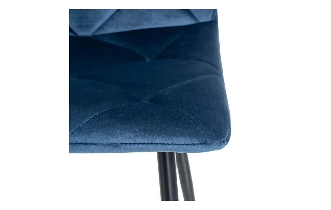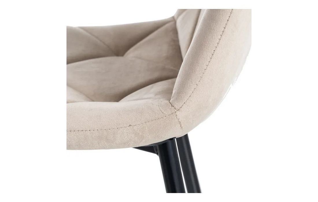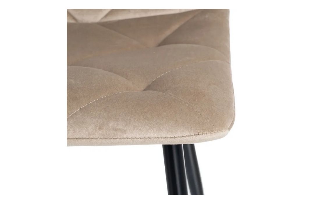 Chair made of black metal with golden detail on the legs and in velvet fabric.