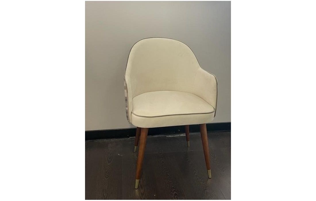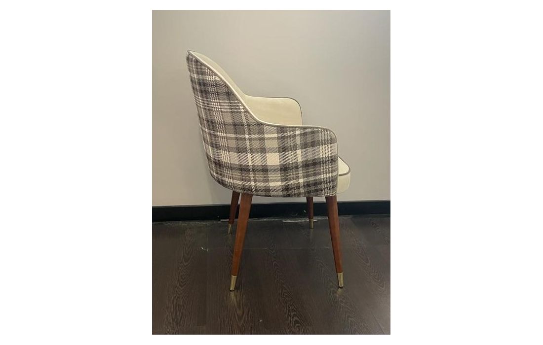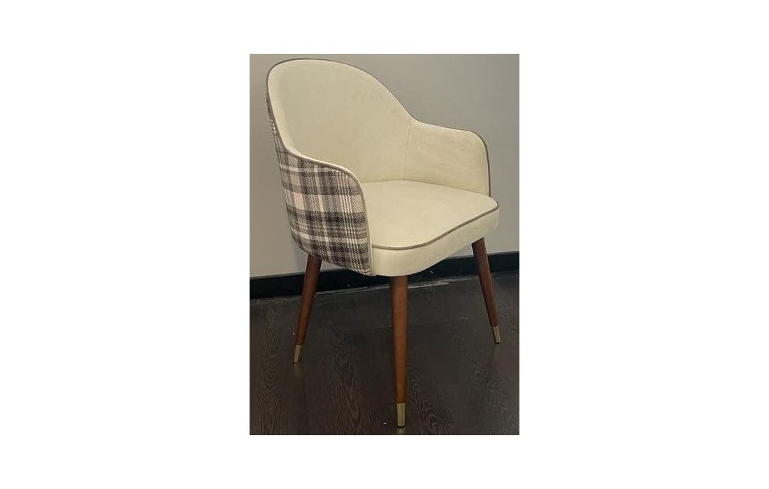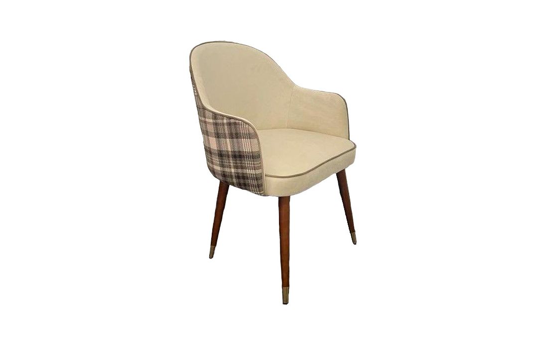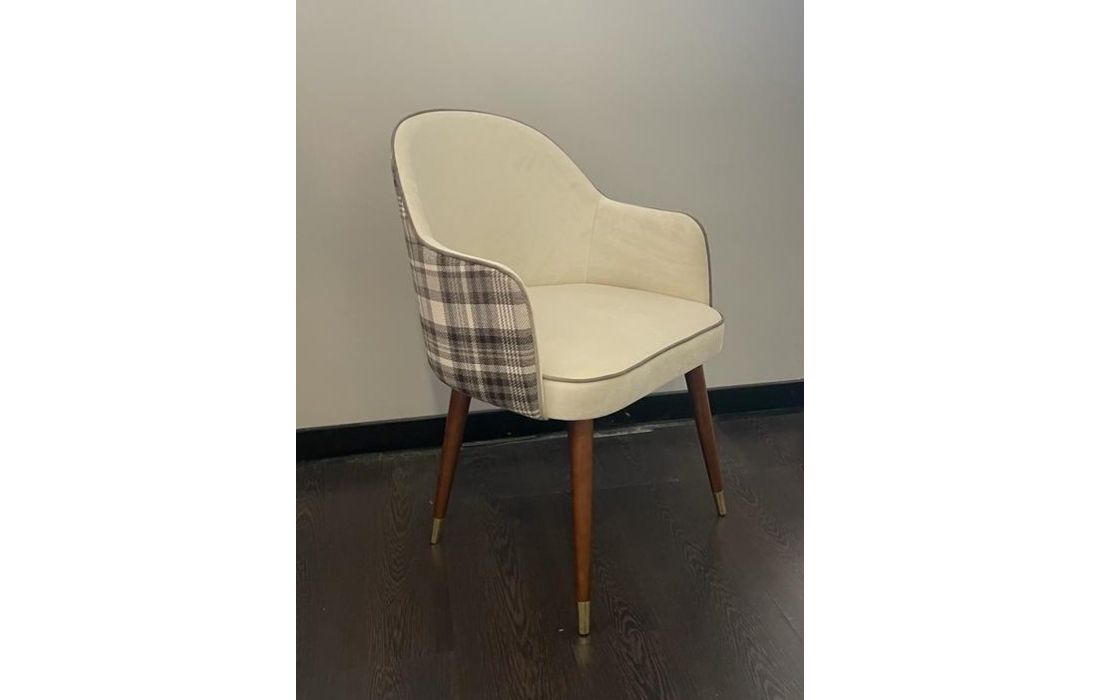 Upholstered armchair with solid feet in the various possible finishes and coatings.