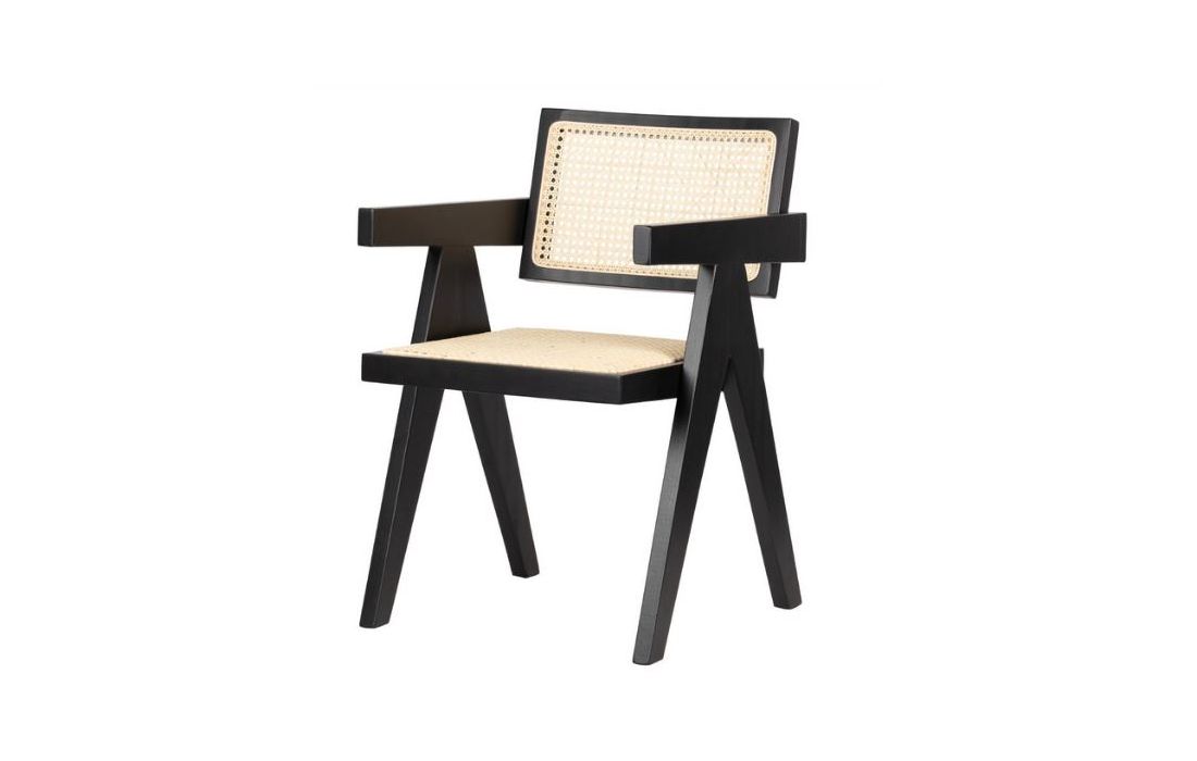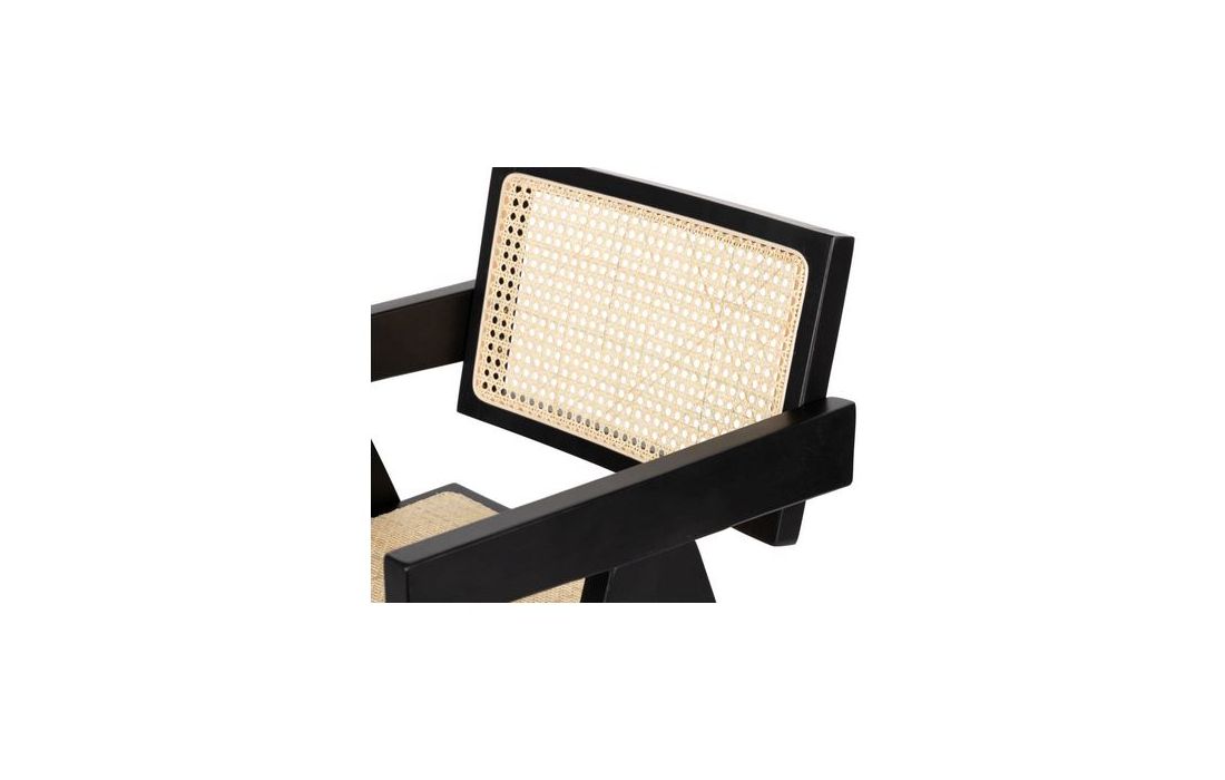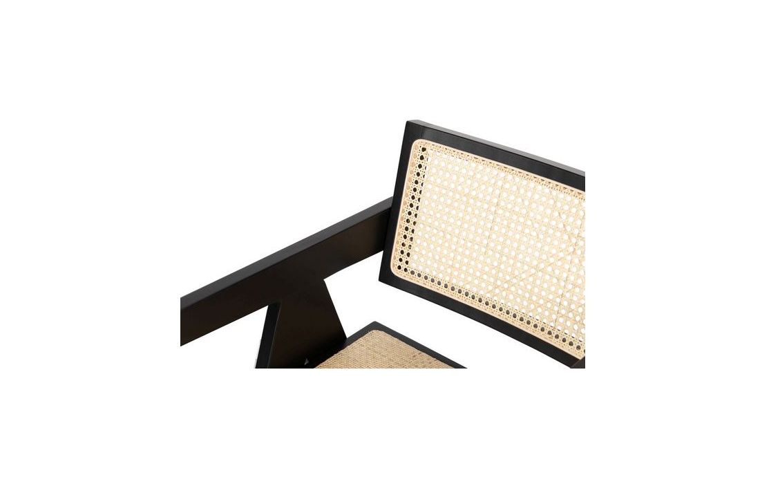 Black painted elm wood chair with rattan seat and back