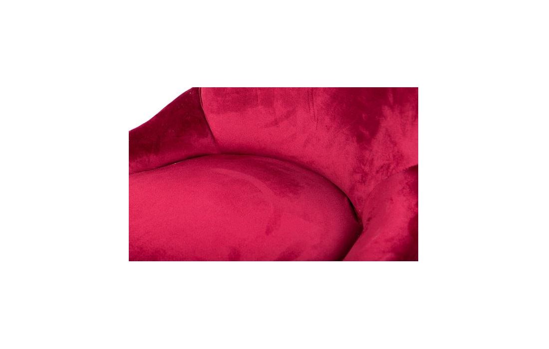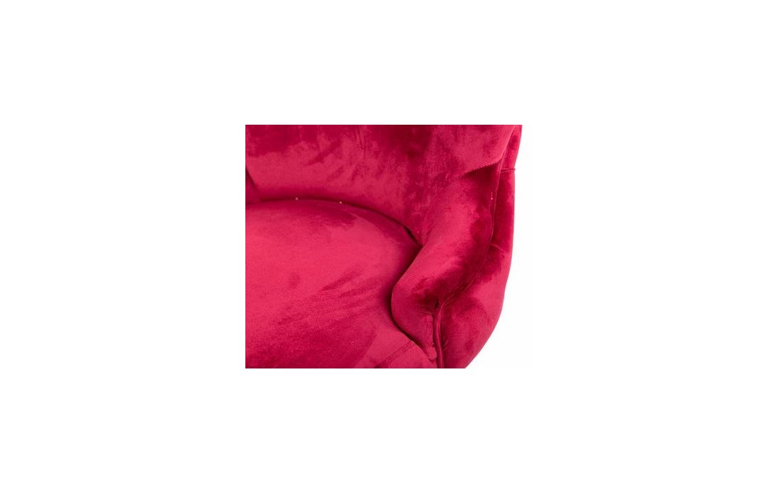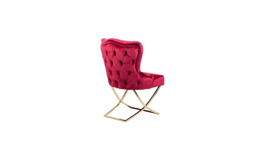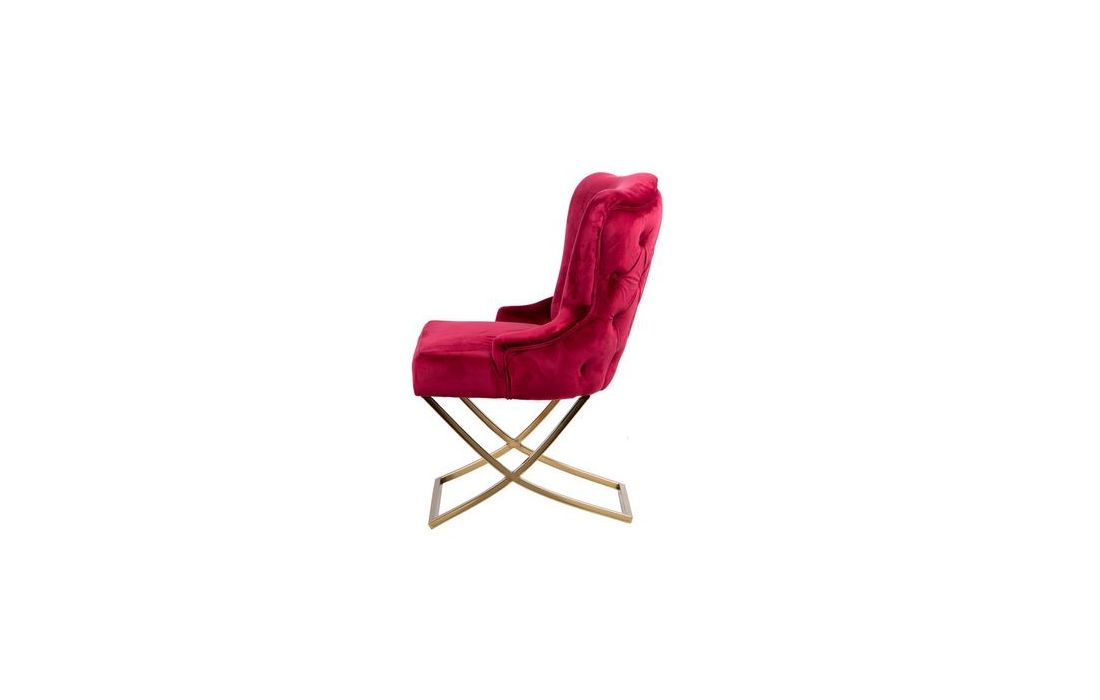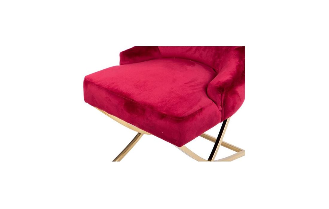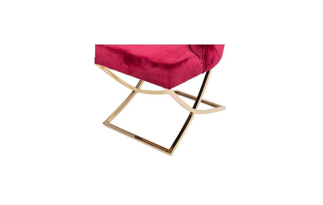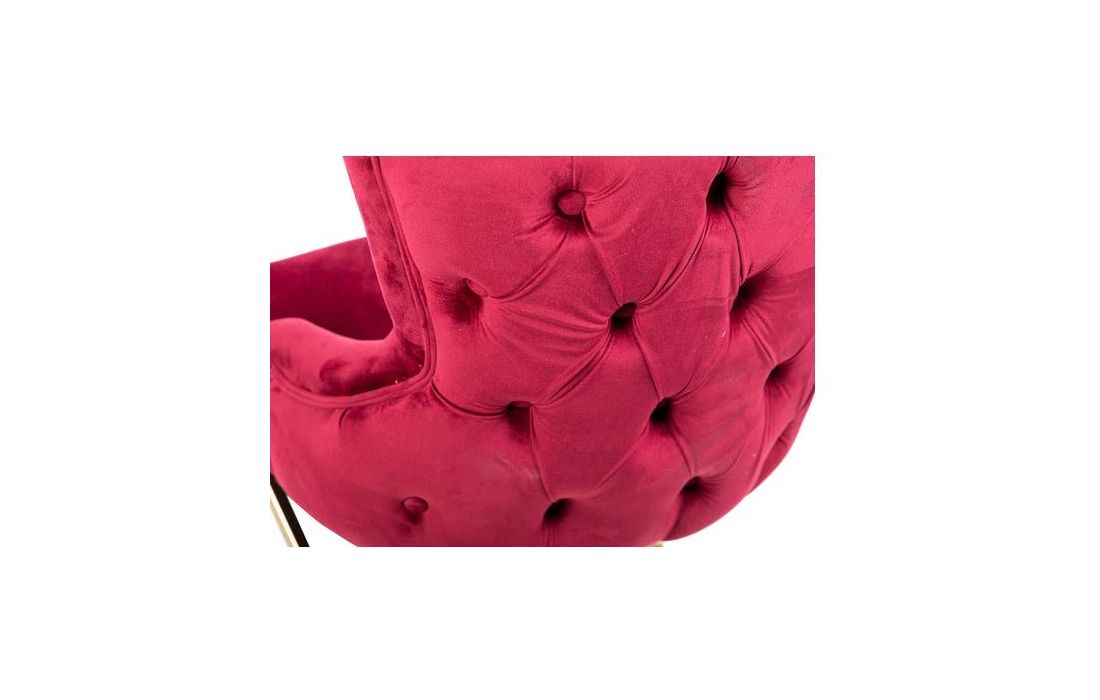 Armchair upholstered in red velvet fabric with capitone handles, stainless steel feet painted in gold color