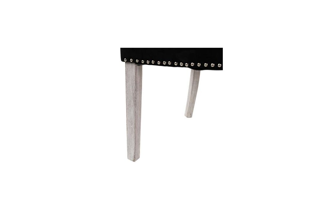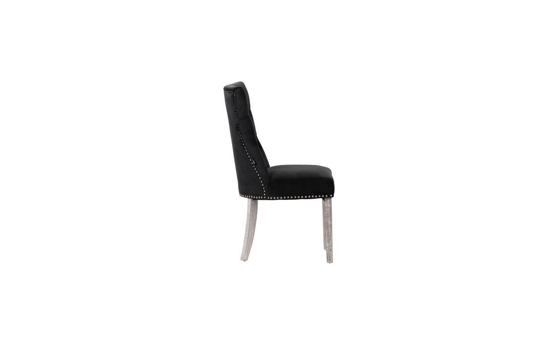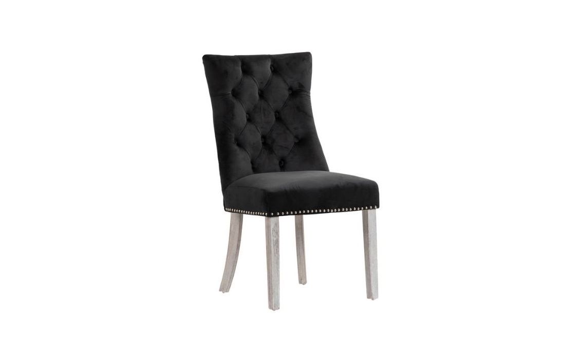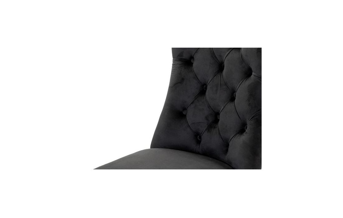 Armchair upholstered in black velvet fabric with tufted headrests, gray painted oak wood feet