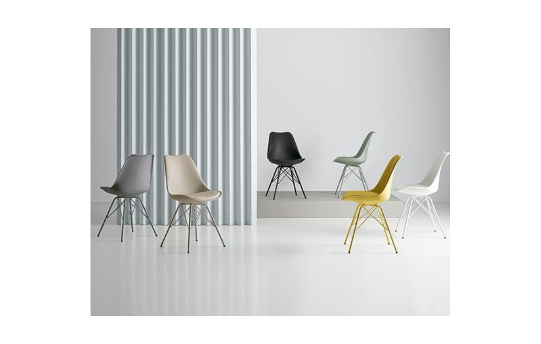 Chair with metal legs and polypropylene structure with padded PU seat.