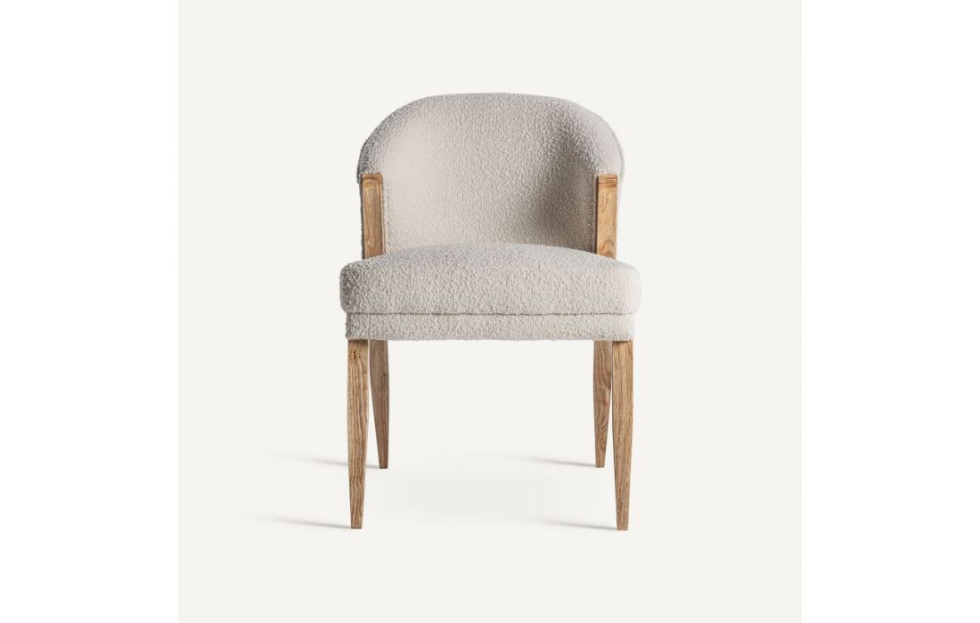 Pine wood chair in natural tones with white polyester upholstery.Recipient :