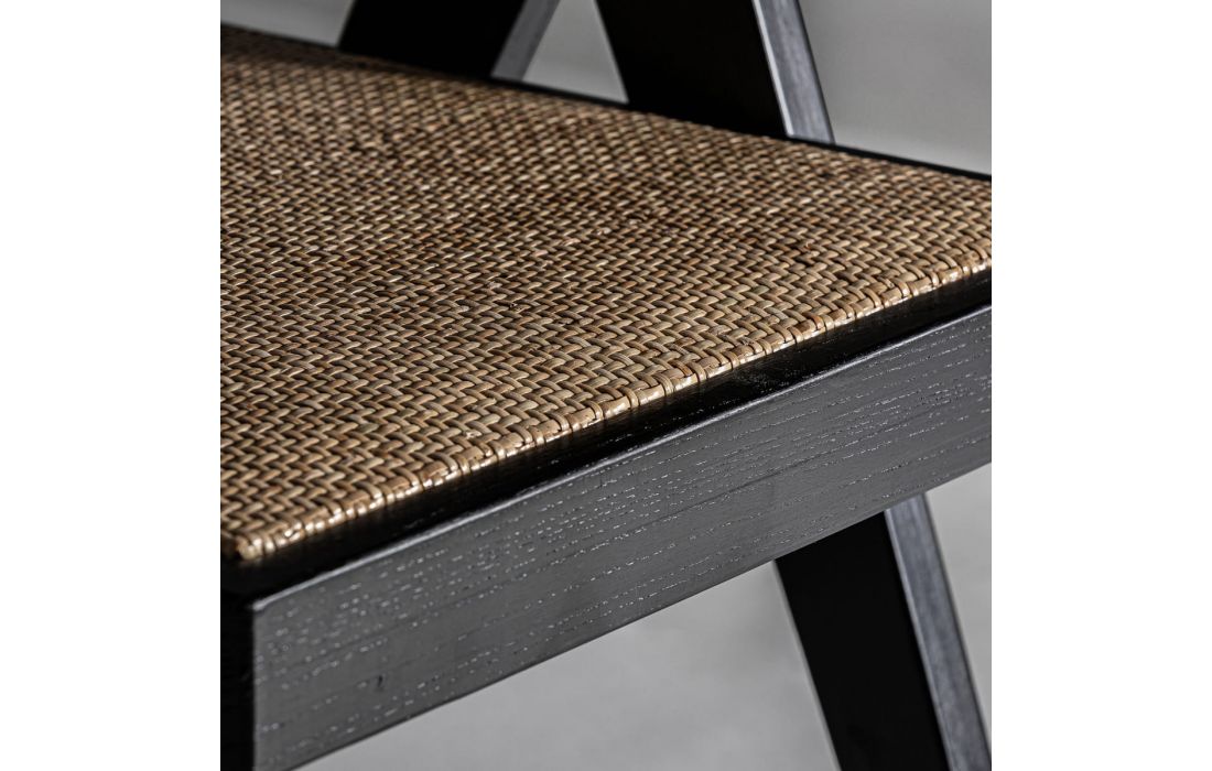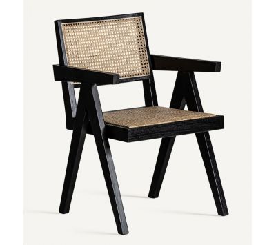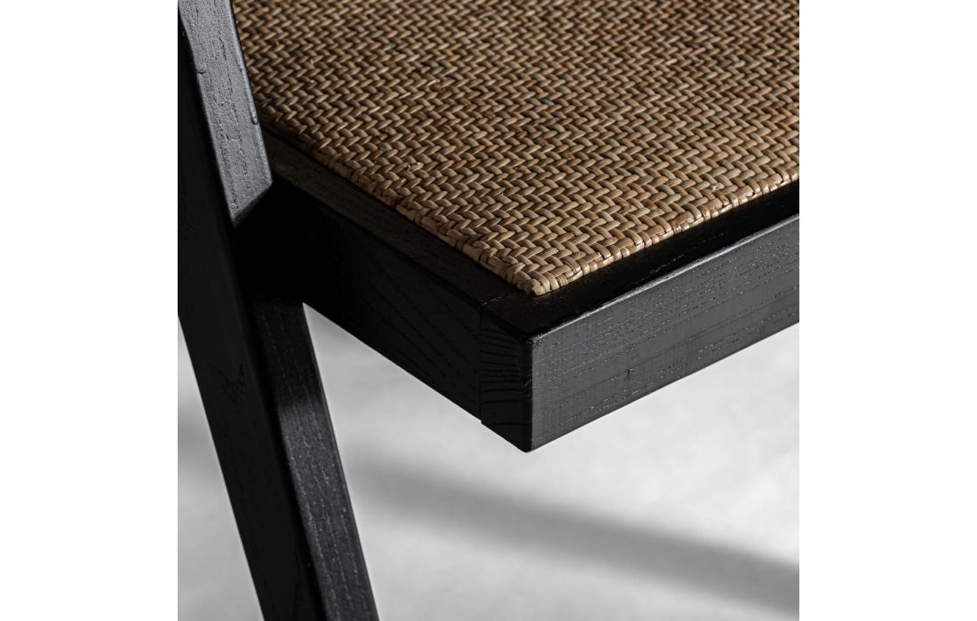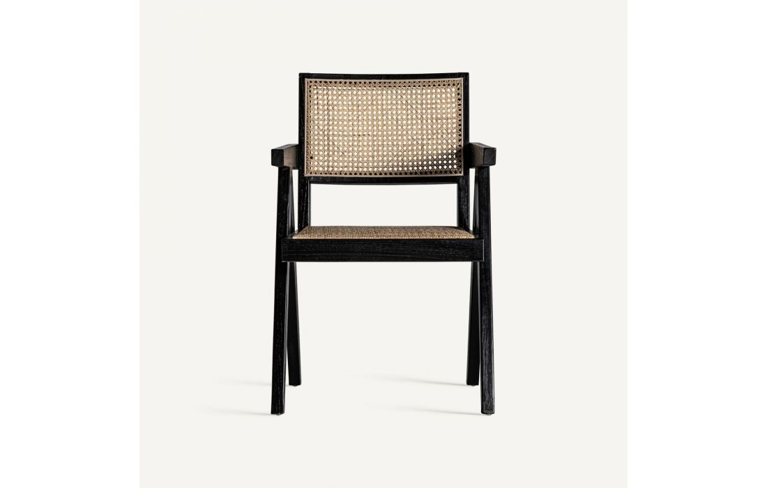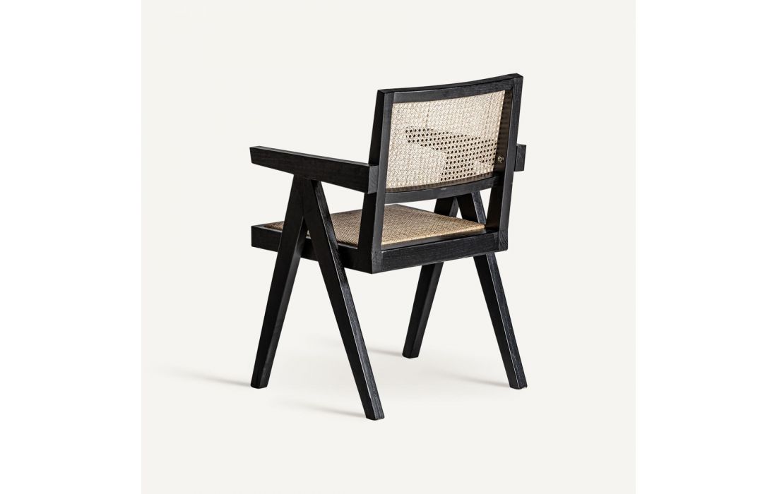 Chair in elm wood and rattan, with wicker and linen upholstery.Recipient :