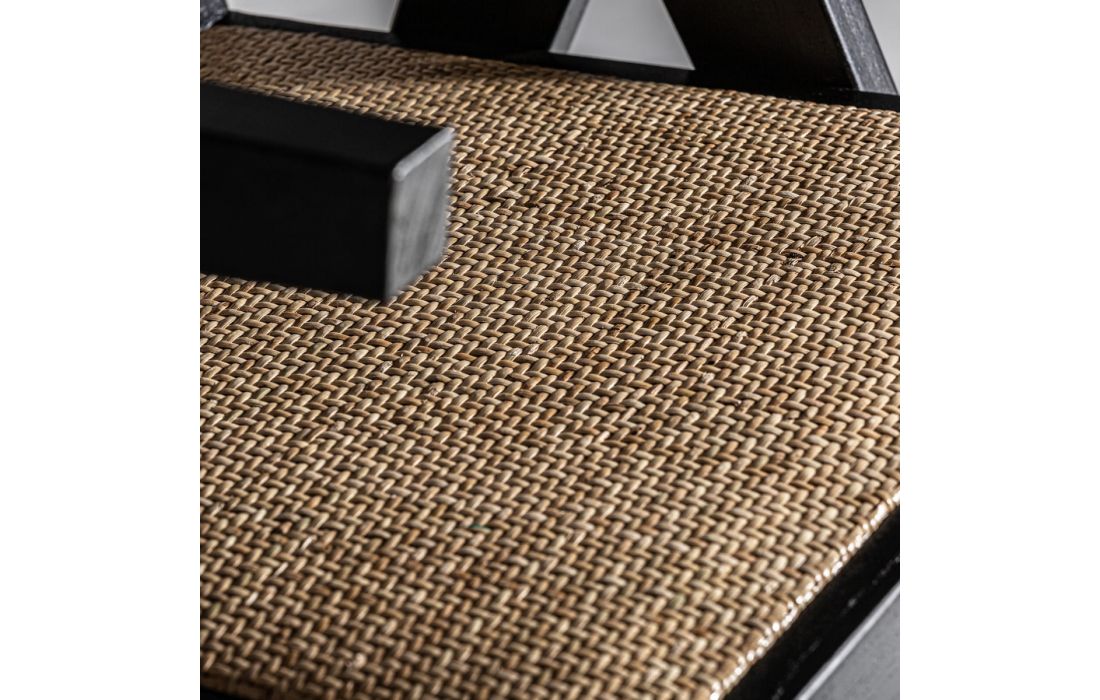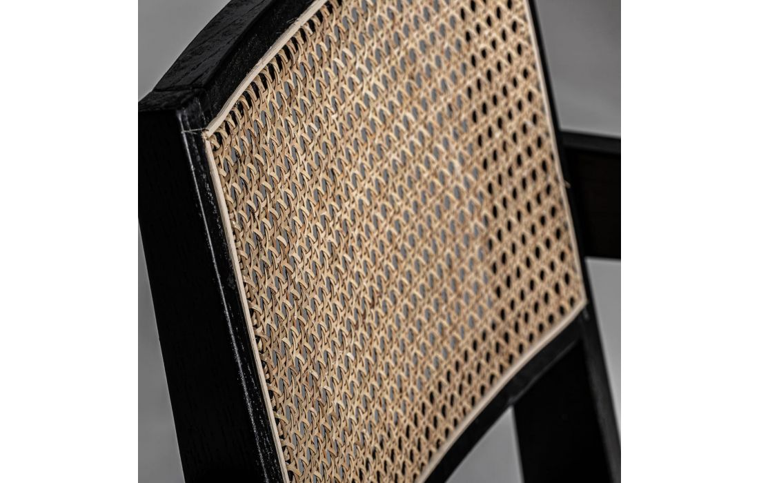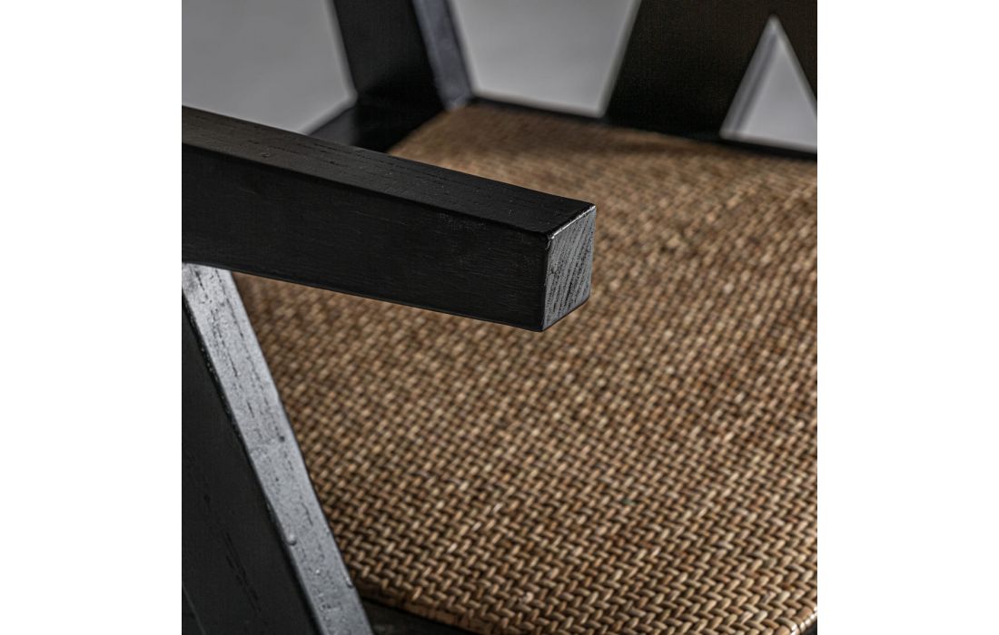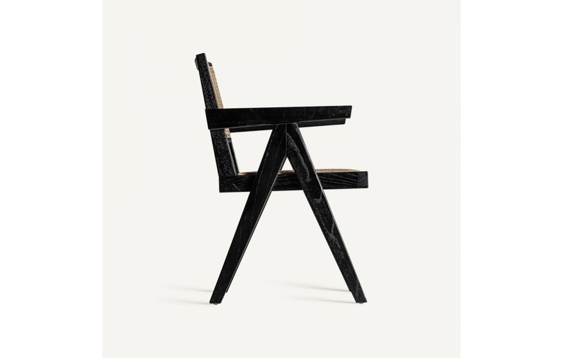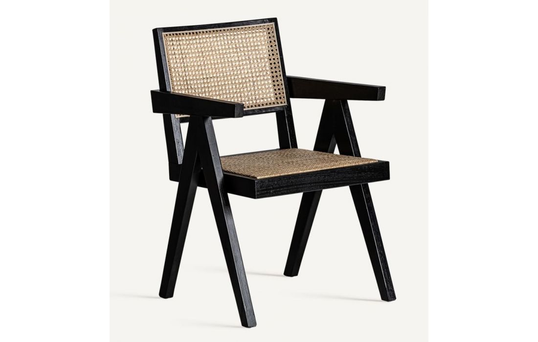 Chair in elm wood and rattan, with wicker and linen upholstery.Recipient :