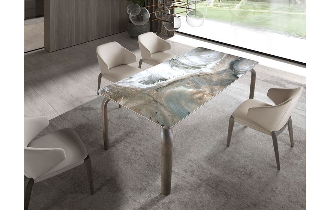 Chair with seat and back upholstered in synthetic leather, oak wood legs in an avant-garde and timeless styleRecipient :
