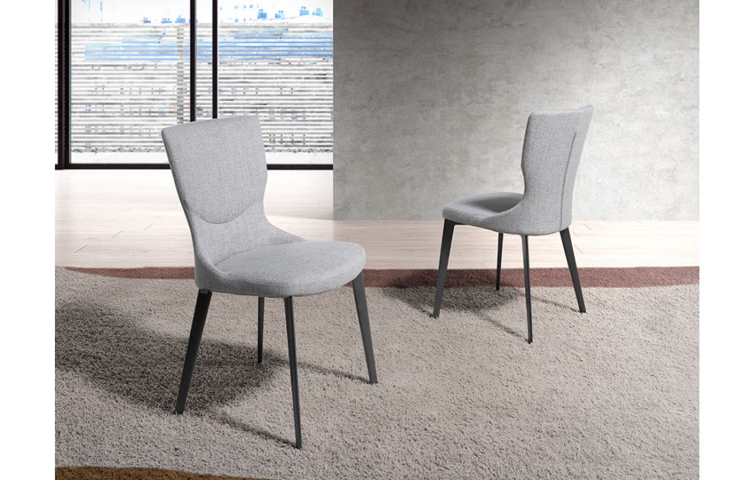 Modern design chair with seat and back upholstered in gray fabric, gray stainless steel legs.Recipient :