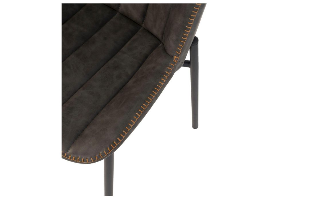 This chair is a piece that combines elegance and modernity, standing out for its design. Its curved backrest offers ergonomic support, while the padded seat ensures comfort. Both elements are upholstered in synthetic leather.