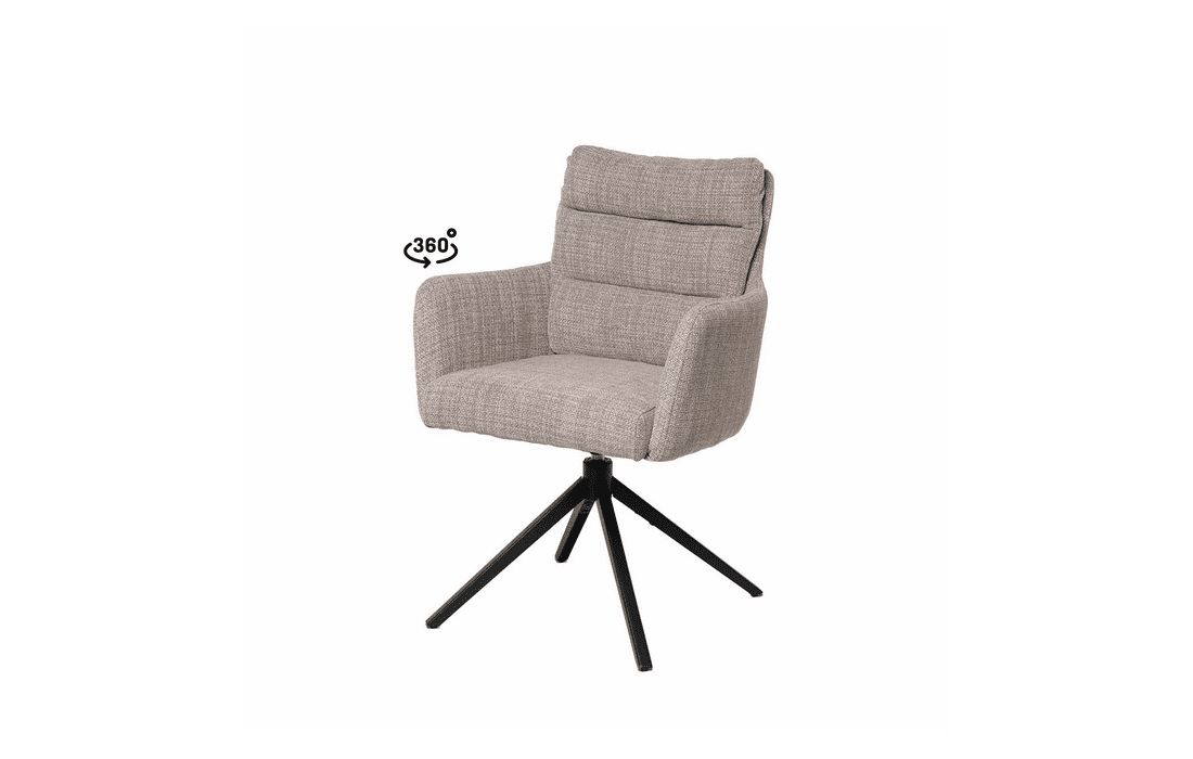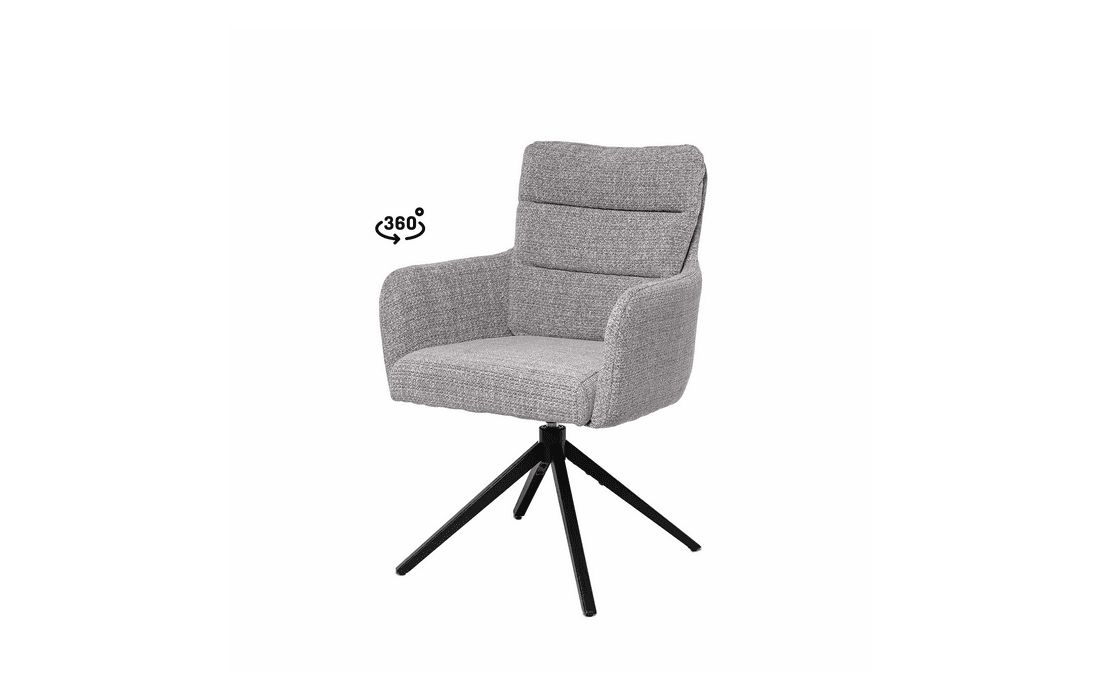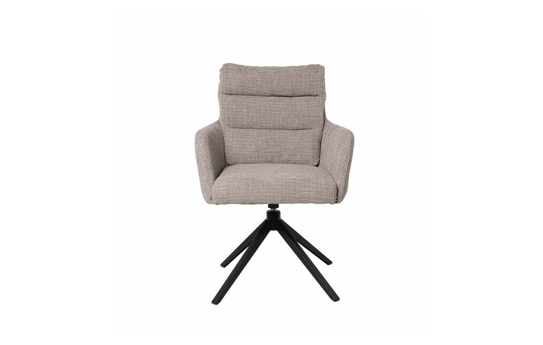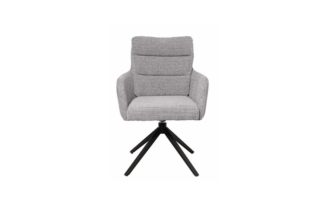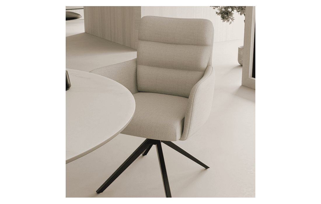 This chair stands out for its contemporary design. Its metal frame with ergonomic support makes it an ideal choice, and it features a 360° swivel mechanism with automatic return. Available in light gray, dark gray, beige, and taupe.