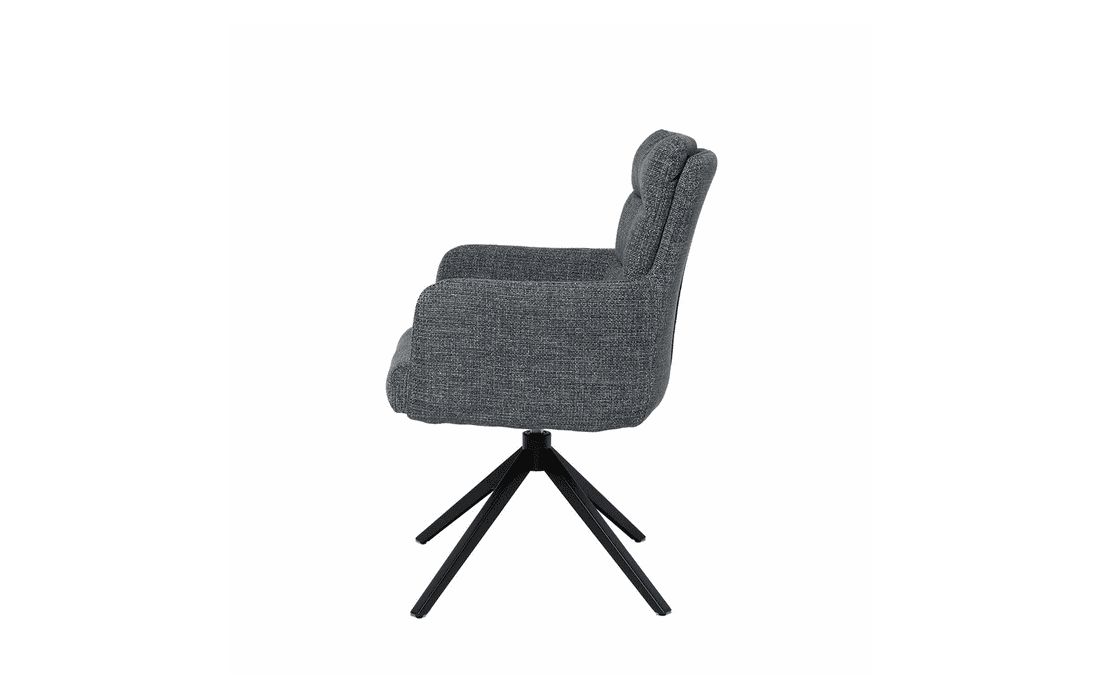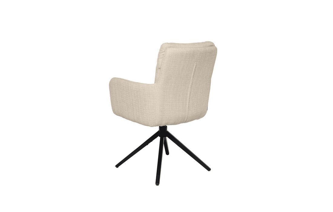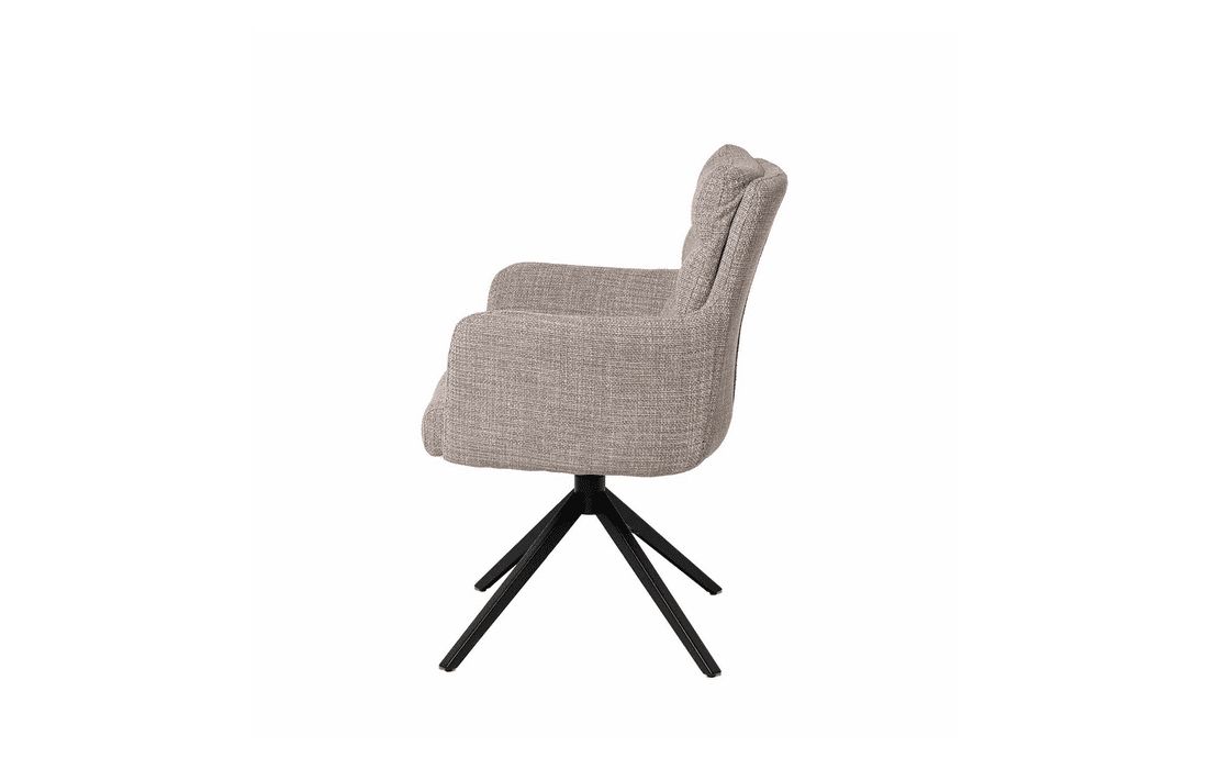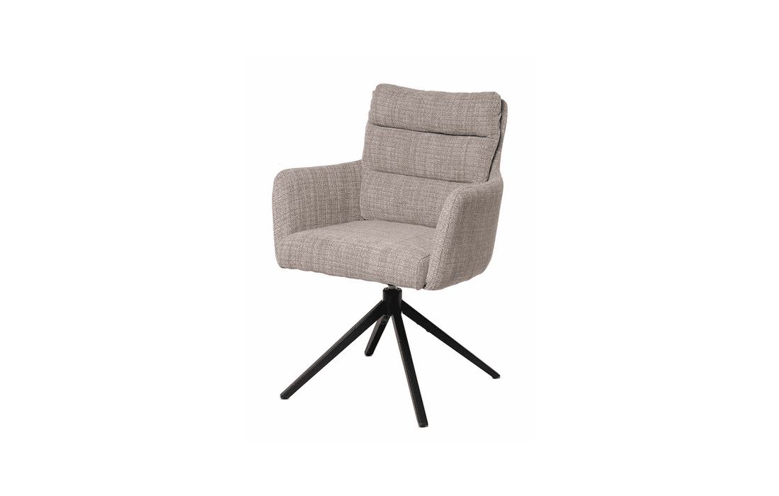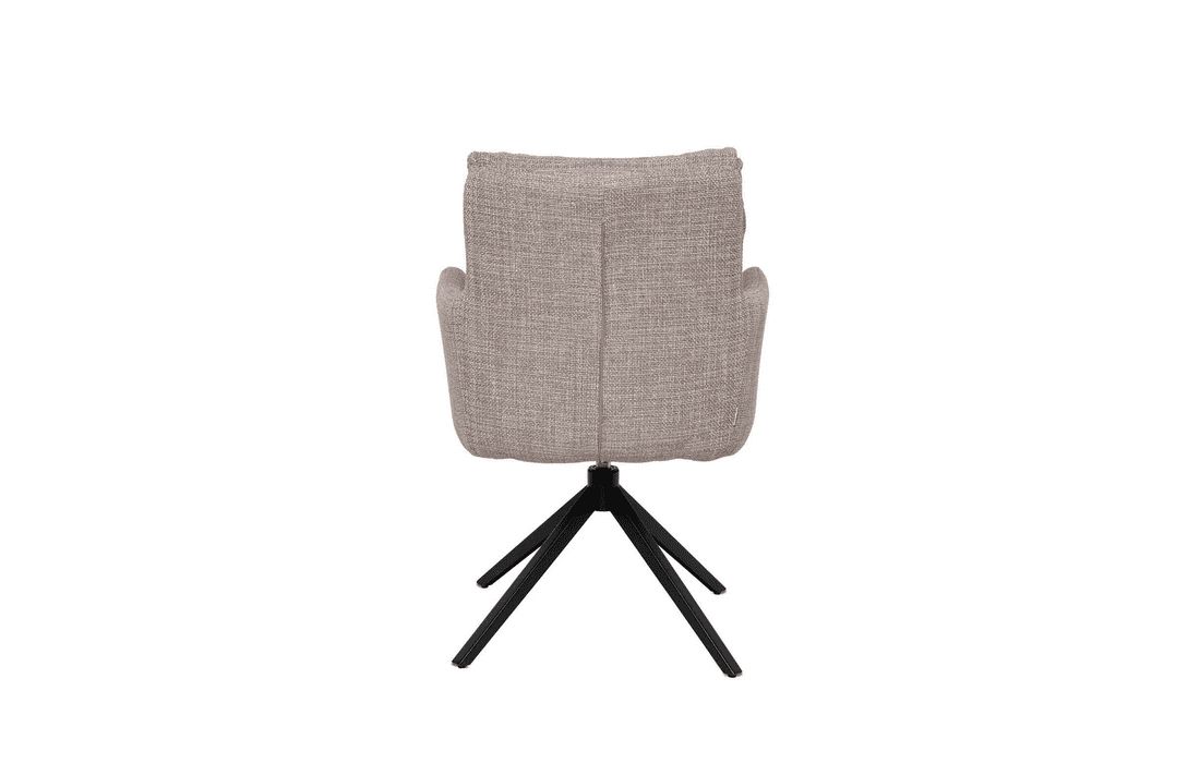 This chair stands out for its contemporary design. Its metal frame with ergonomic support makes it an ideal choice, and it features a 360° swivel mechanism with automatic return. Available in light gray, dark gray, beige, and taupe.