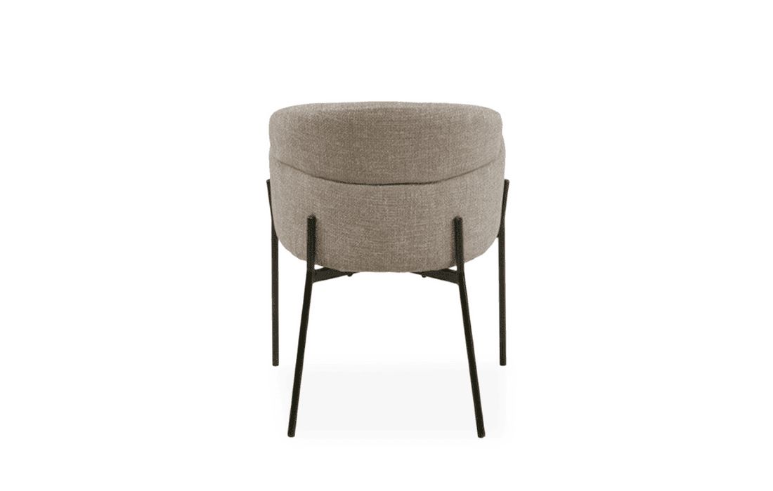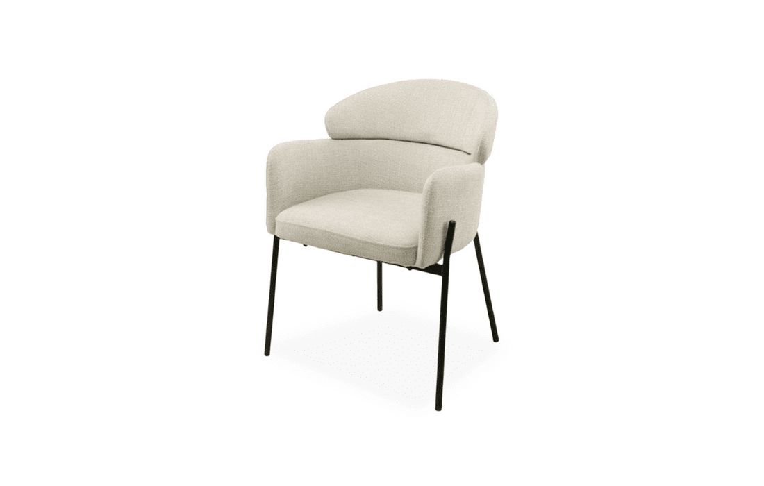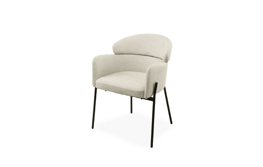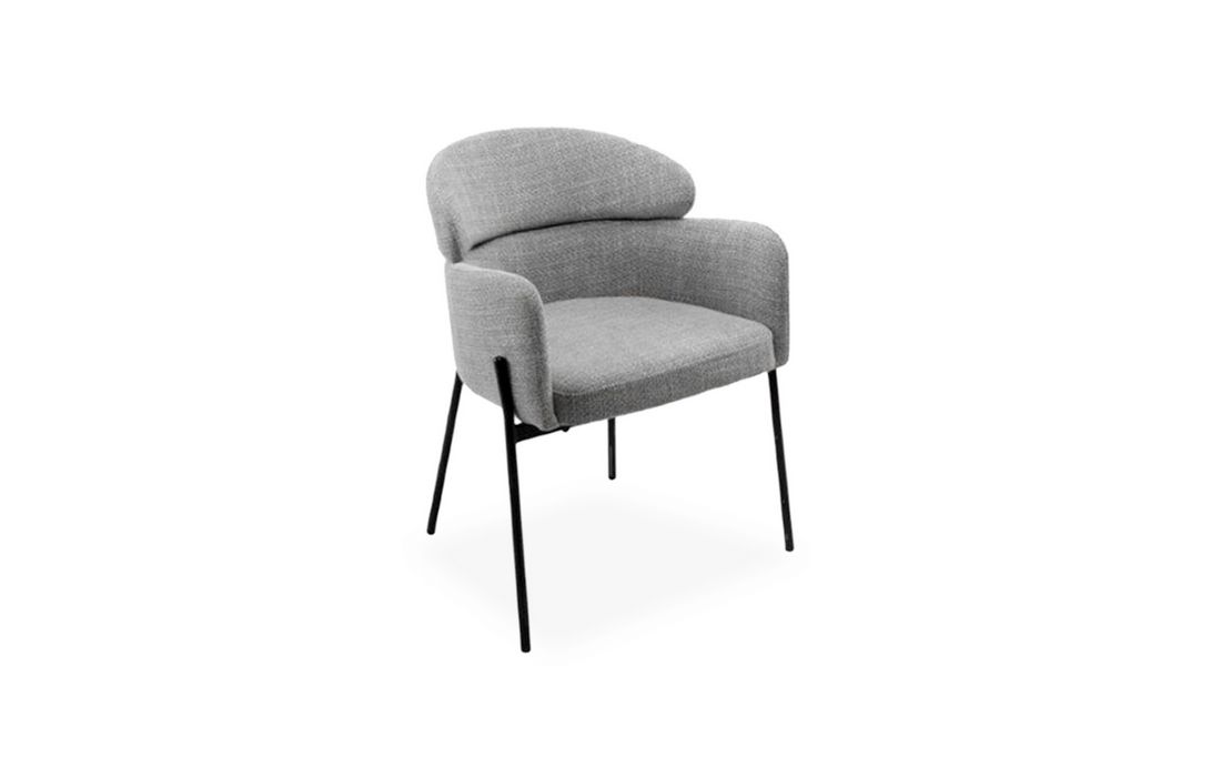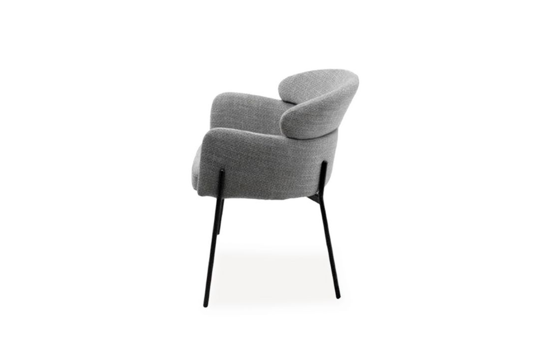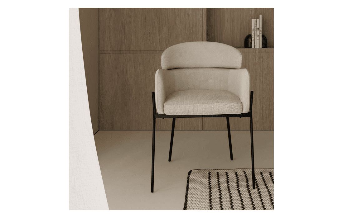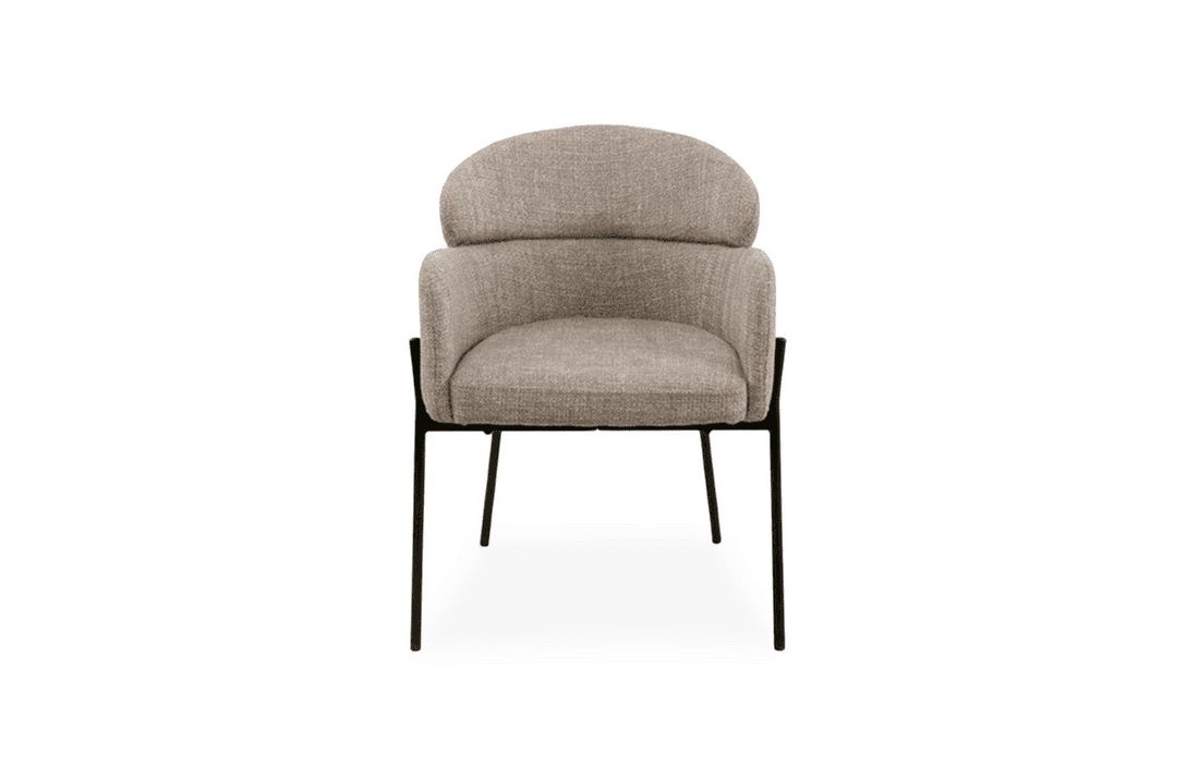 This chair features a double backrest and padded armrests, providing comfort and support. The chair's design combines elegance and durability. Available in light gray, beige, and taupe.